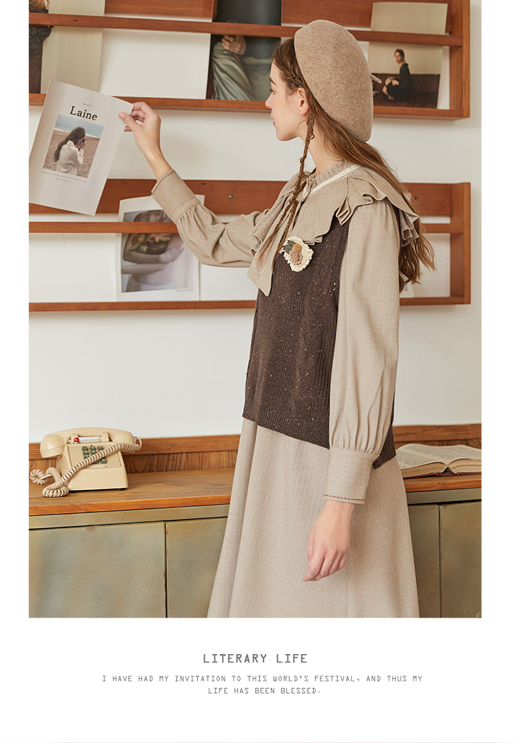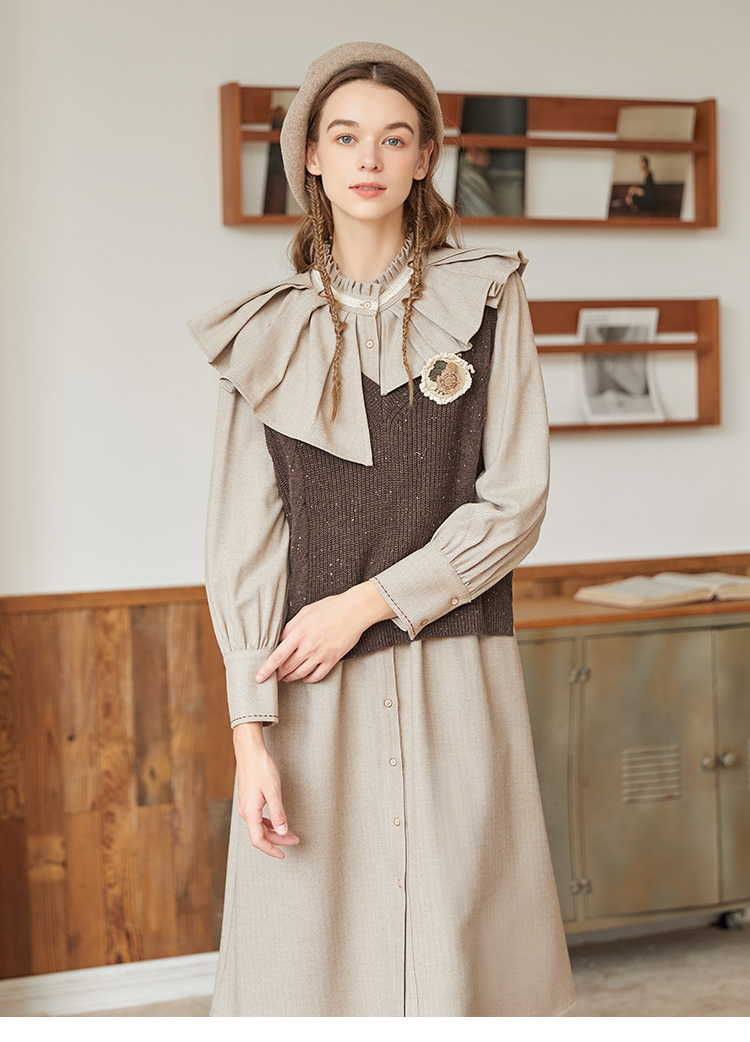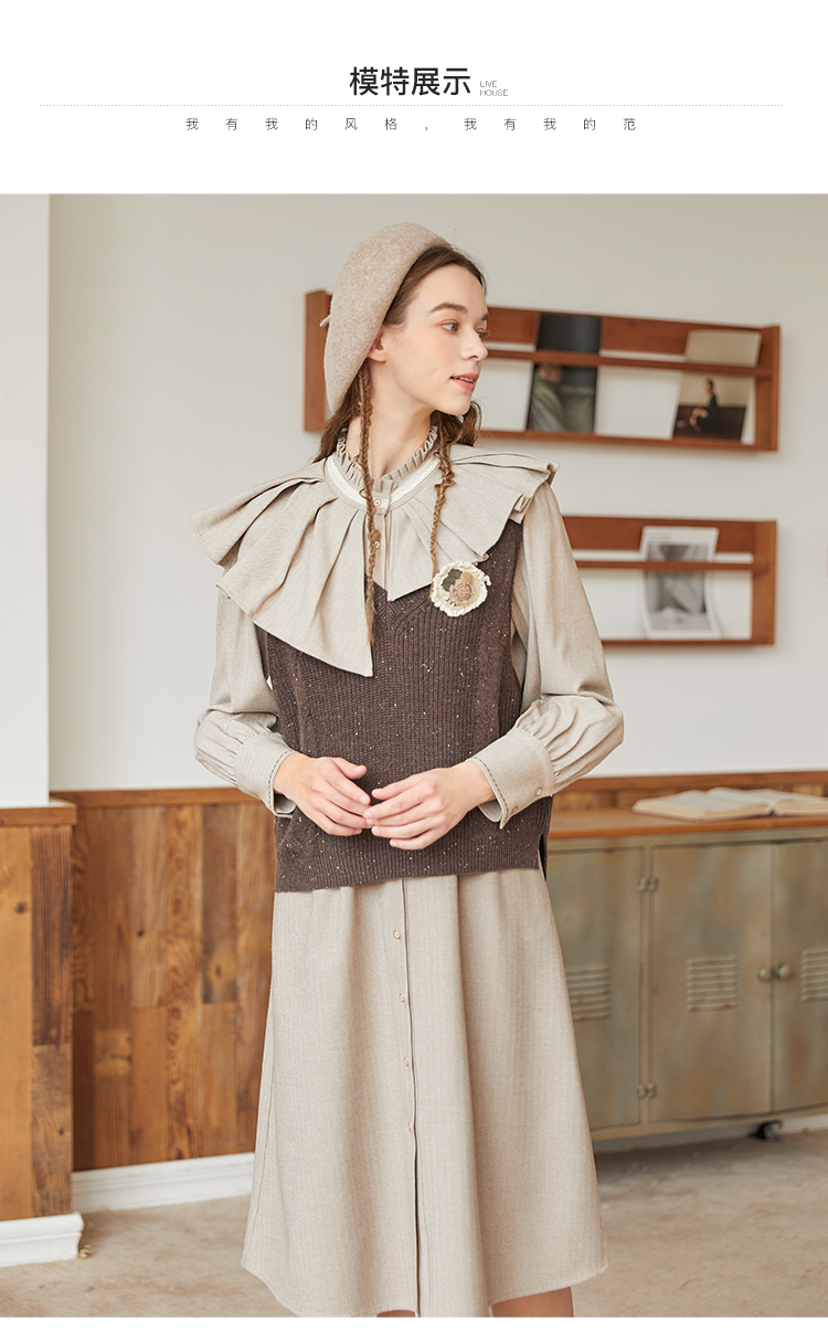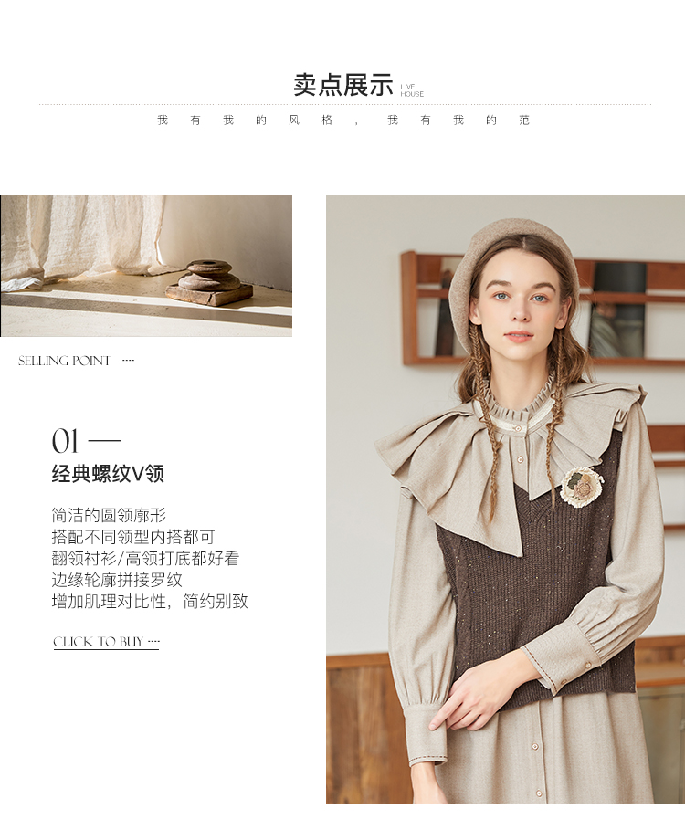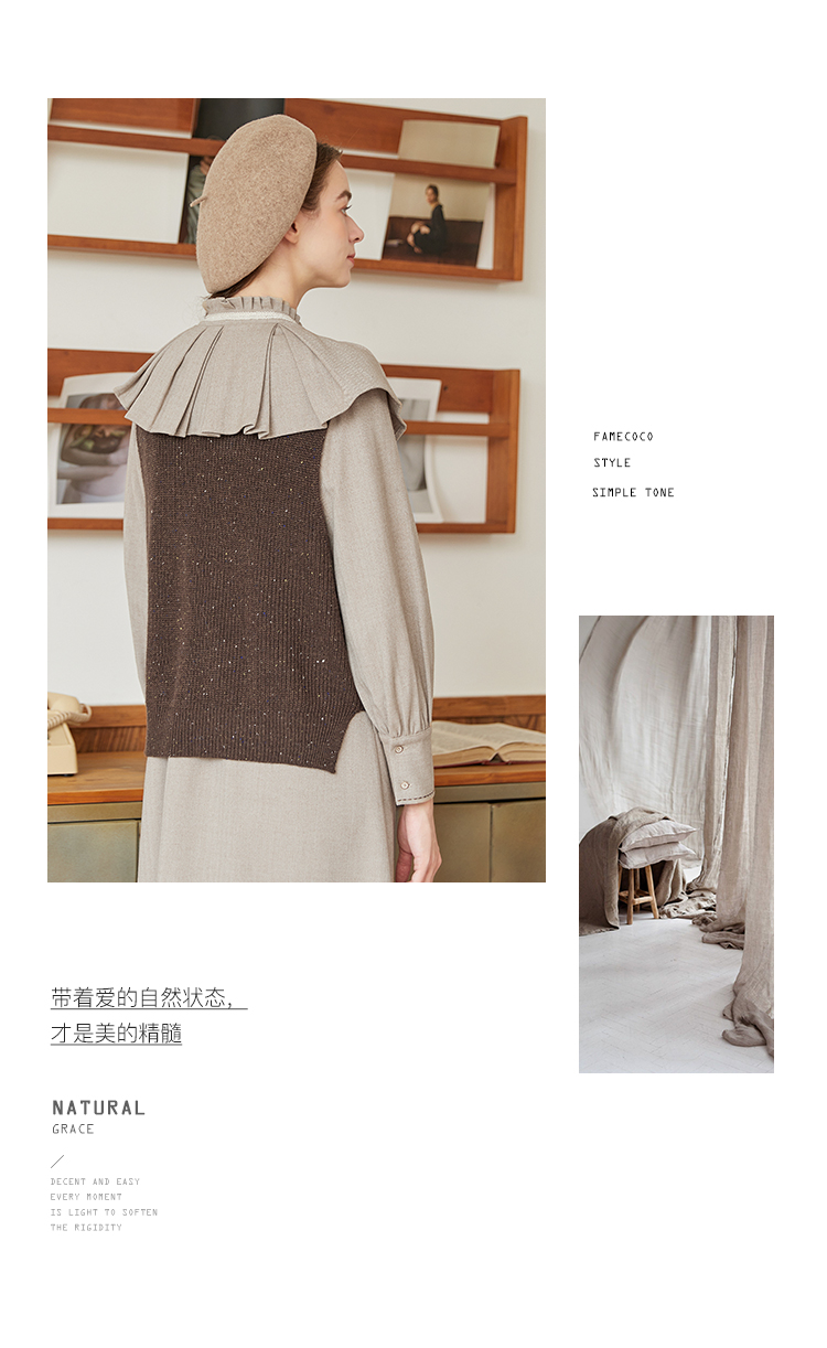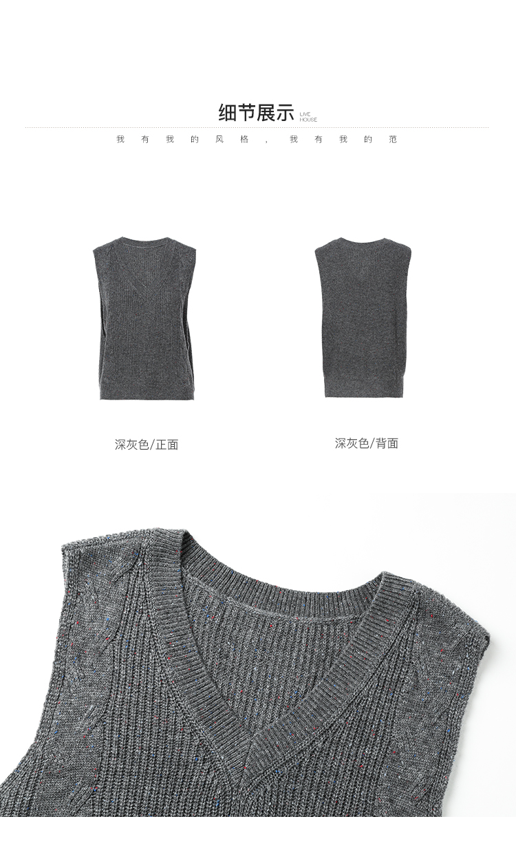 Famecoco范可儿加厚毛衣马甲女季肌理感V领羊毛保暖无袖背心坎肩F228CA009