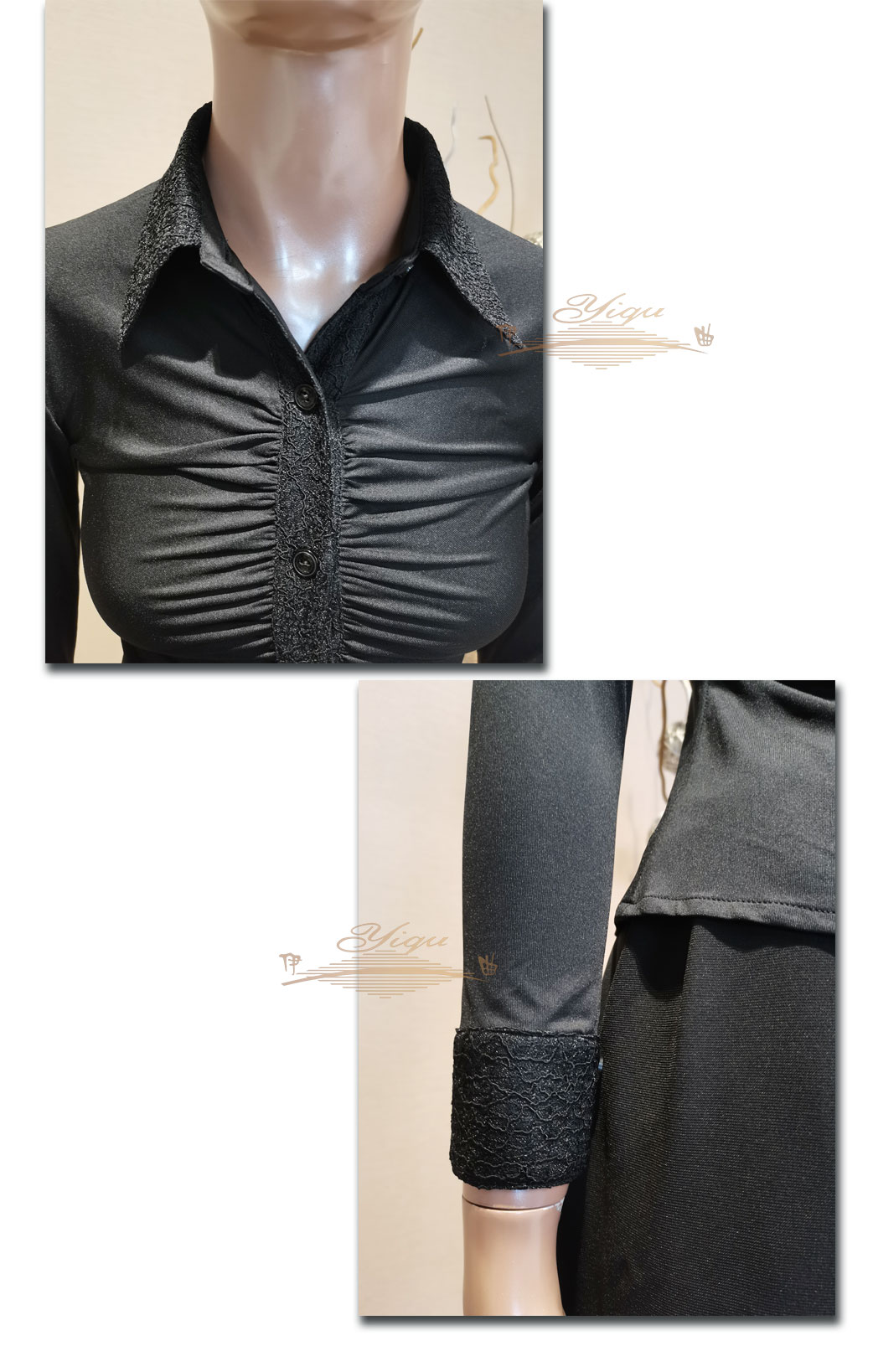 【特惠】YIQU丨“弄潮一族”花边款衬衣(神秘黑)