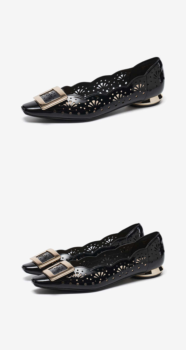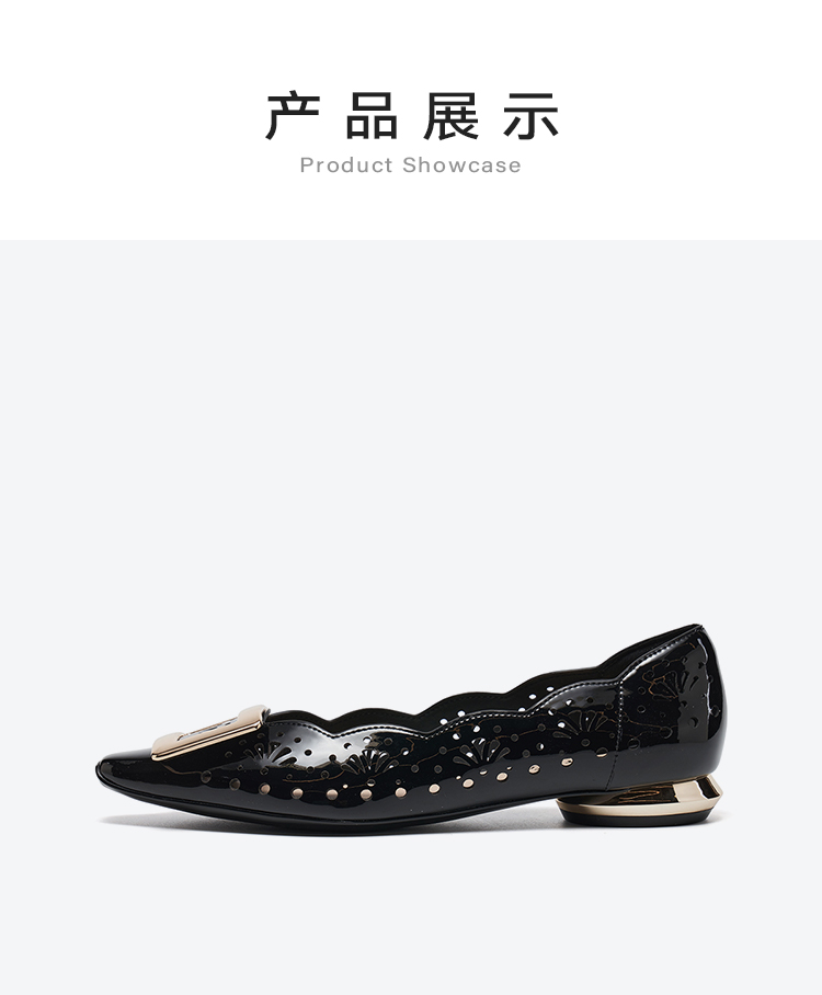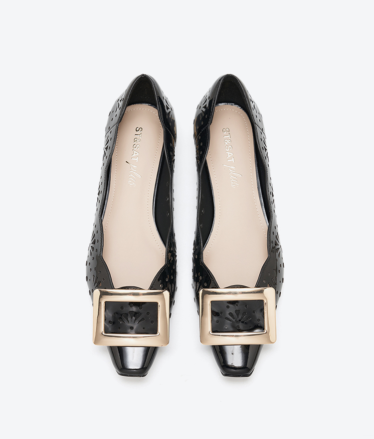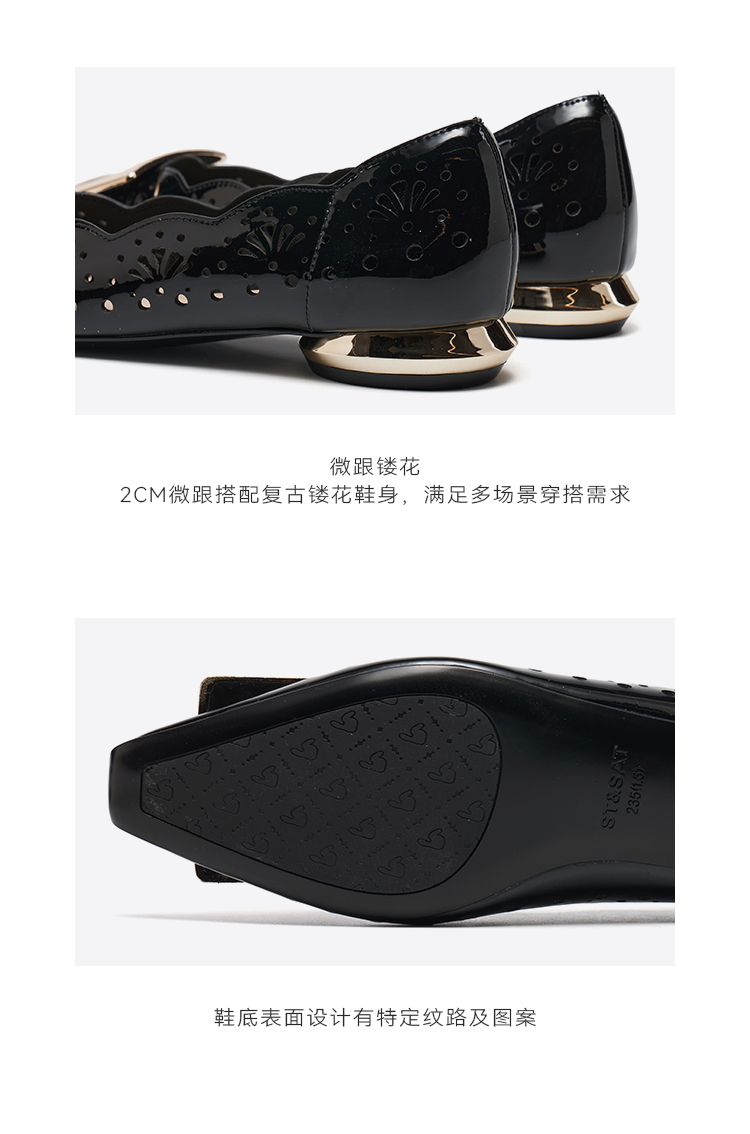 【方扣系列】星期六26春新款简约镂空漆皮低跟单鞋SSE1111022
