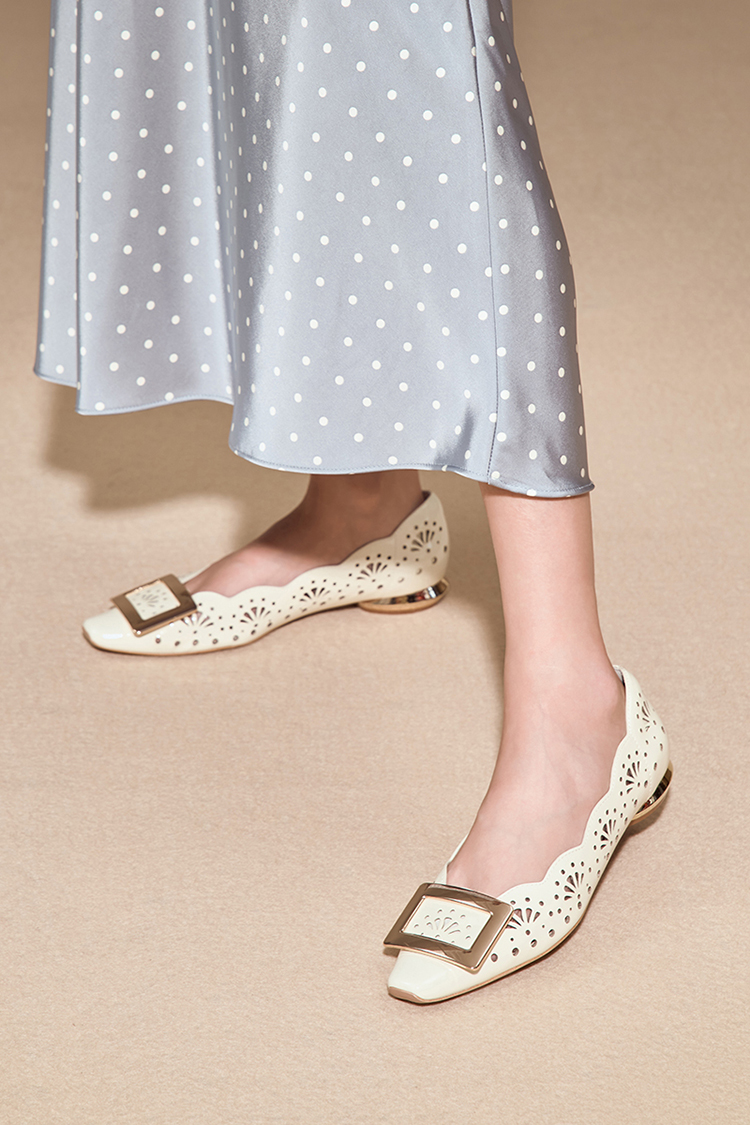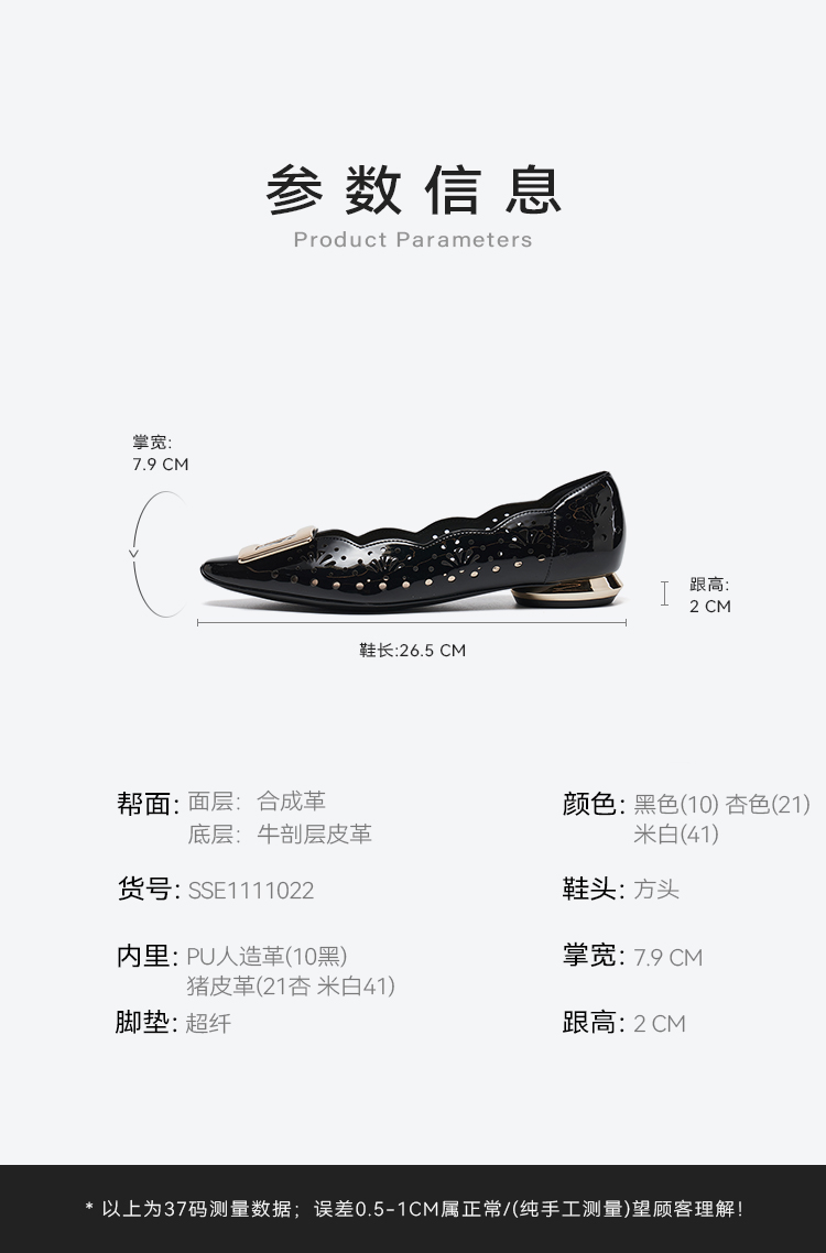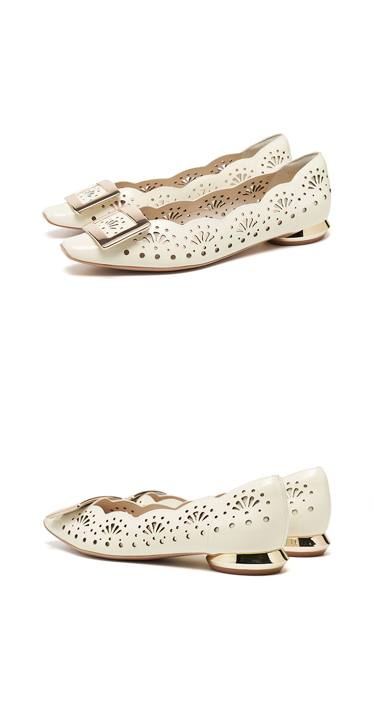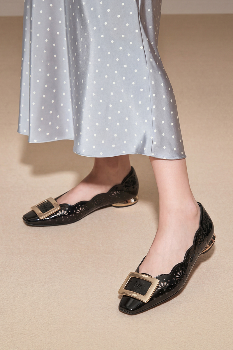 【方扣系列】星期六26春新款简约镂空漆皮低跟单鞋SSE1111022