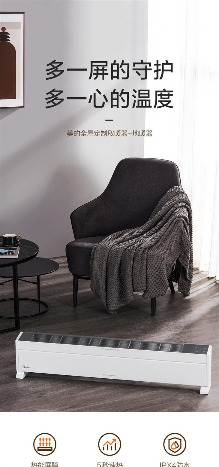 美的(Midea)(509388)电暖器取暖器移动地暖浴室办公室遥控温显2200W全屋干衣居浴两用烘衣NDX-N1