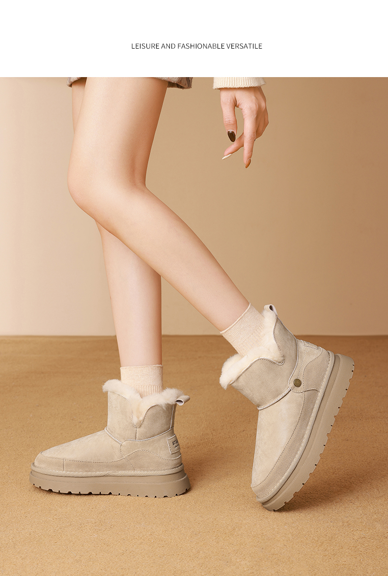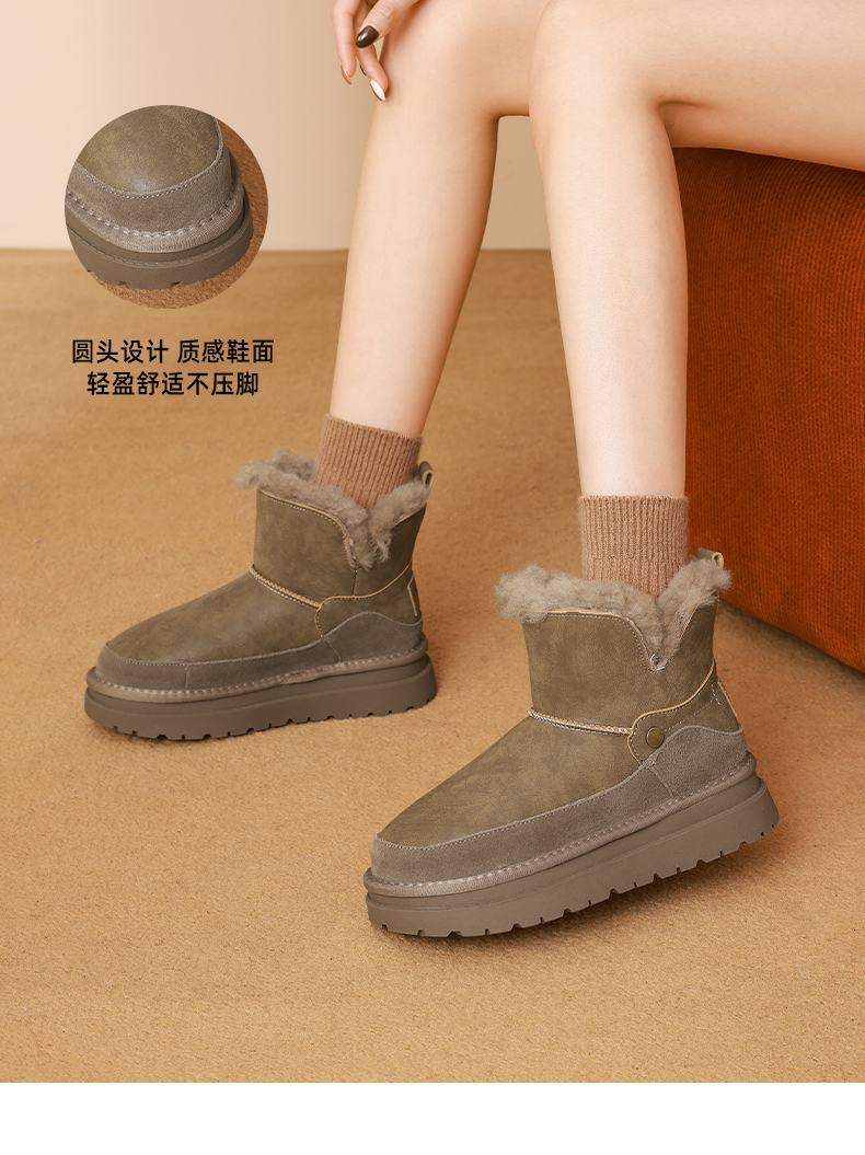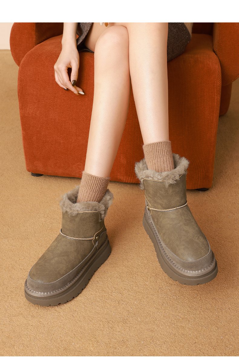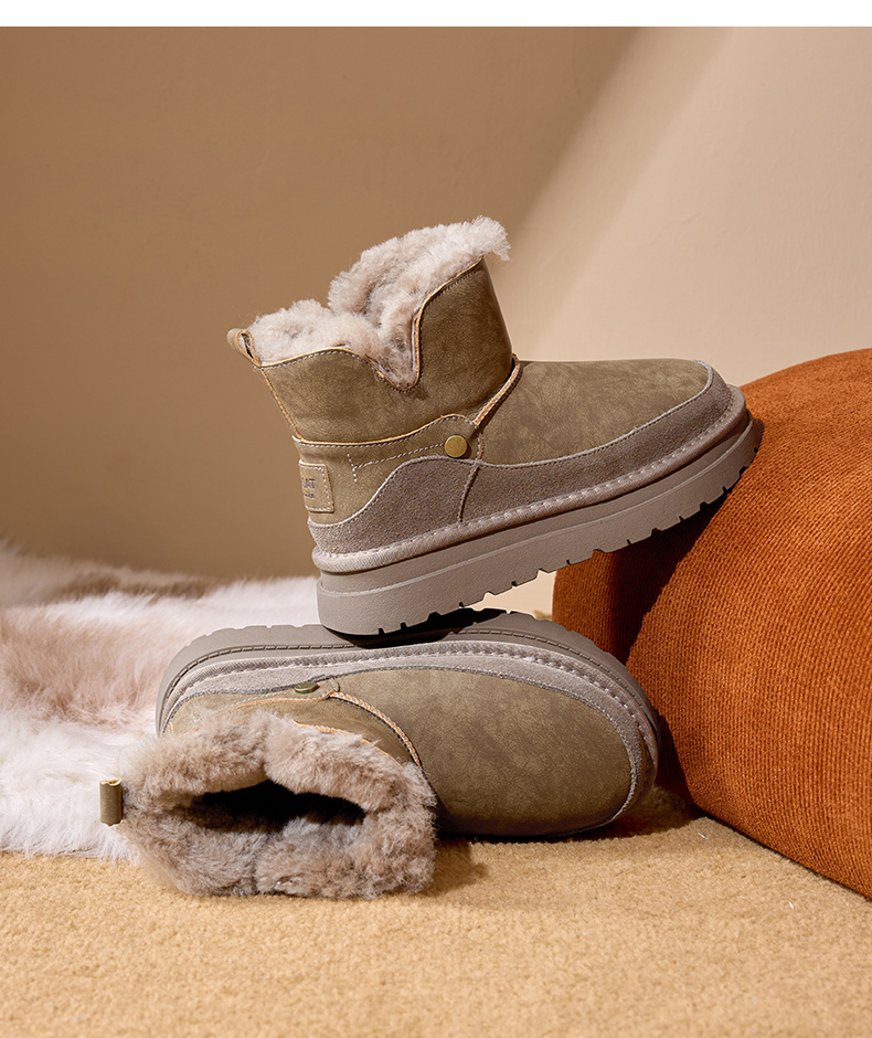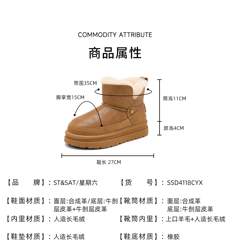 星期六复古拼接厚底防滑雪地靴SSD4118CYX
