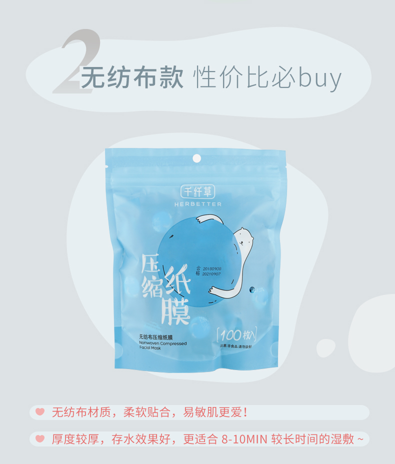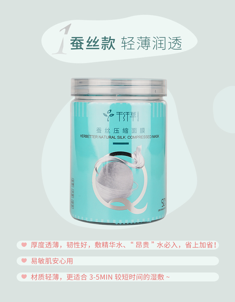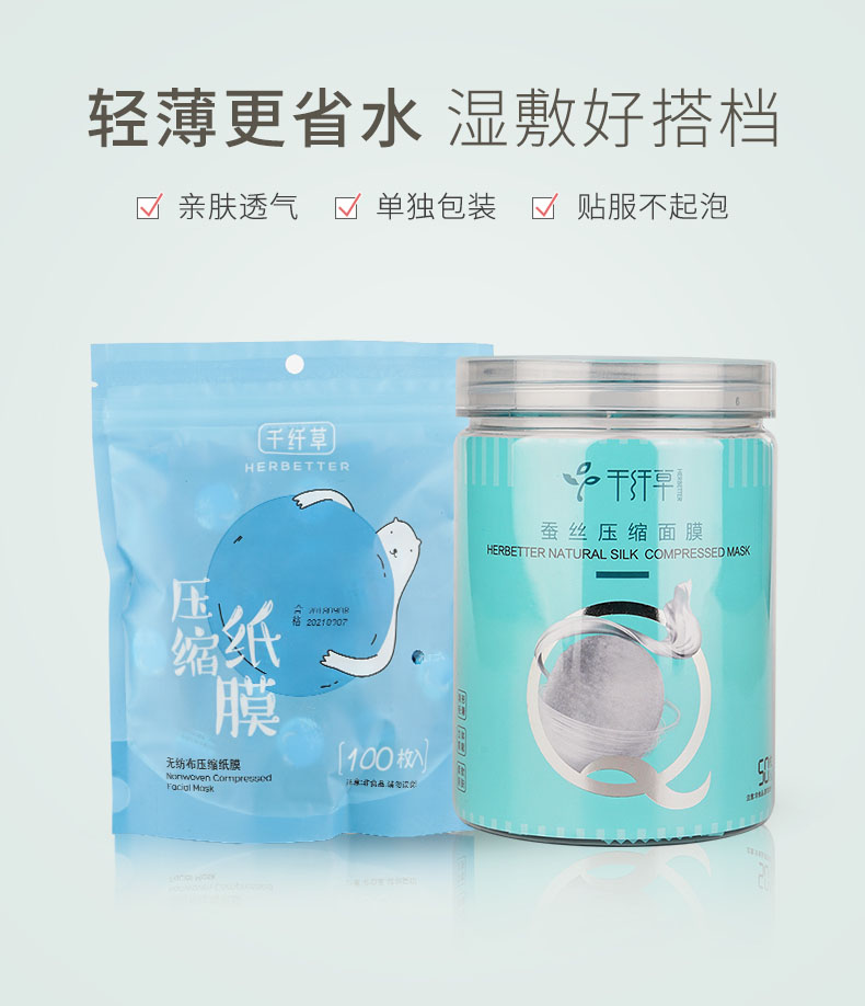 【2罐28.9元起】千纤草压缩面膜蚕丝50粒/无纺布100粒