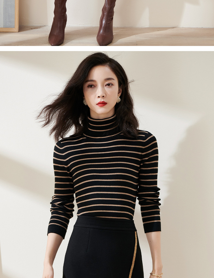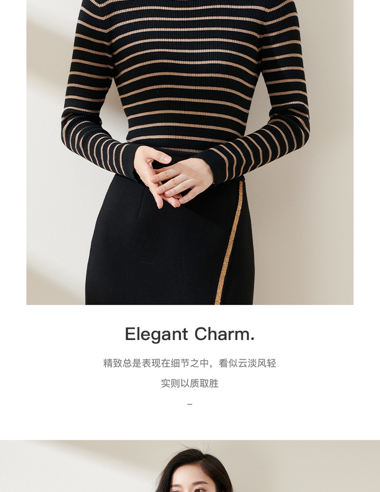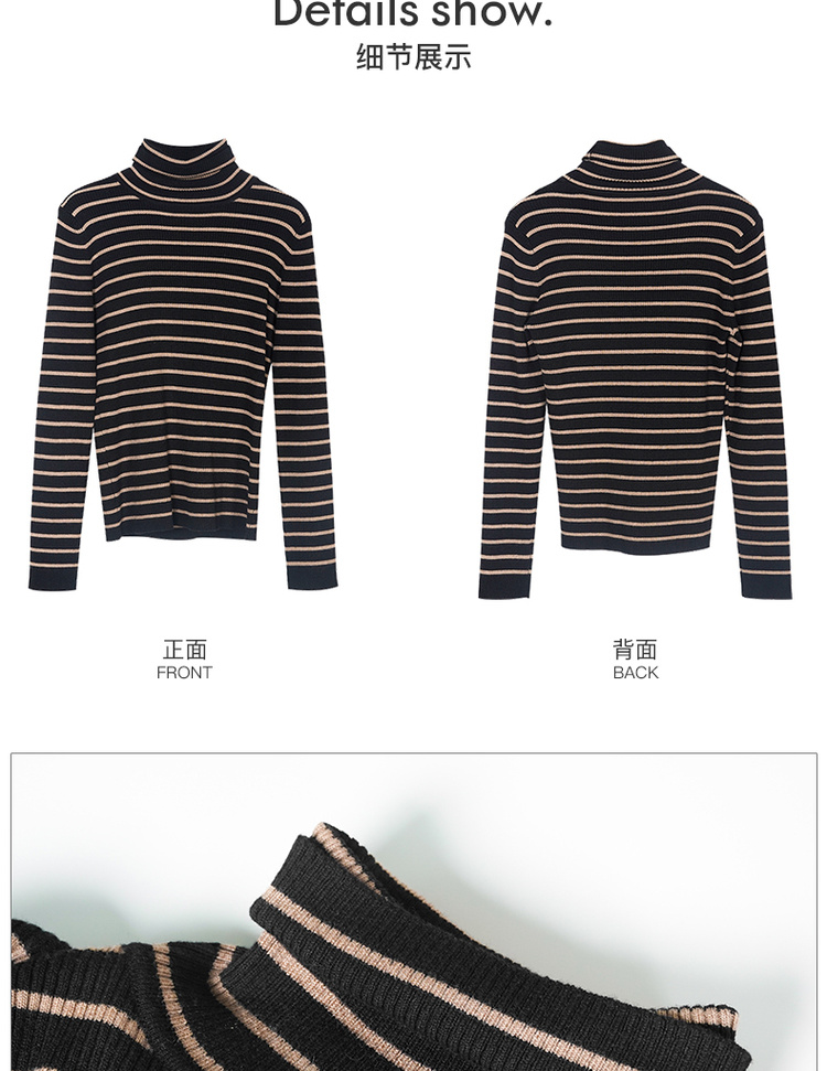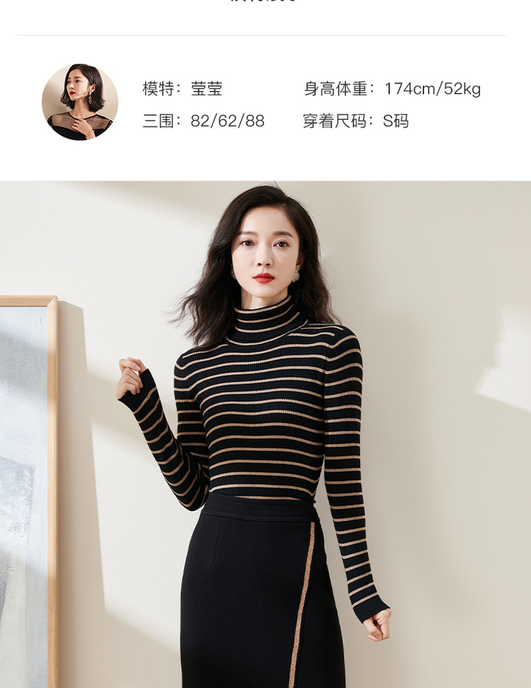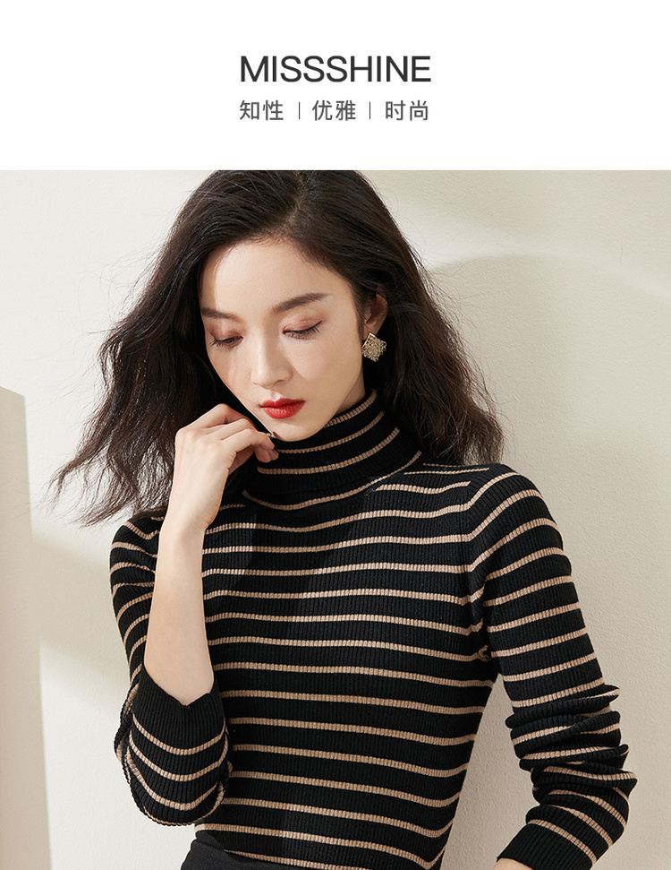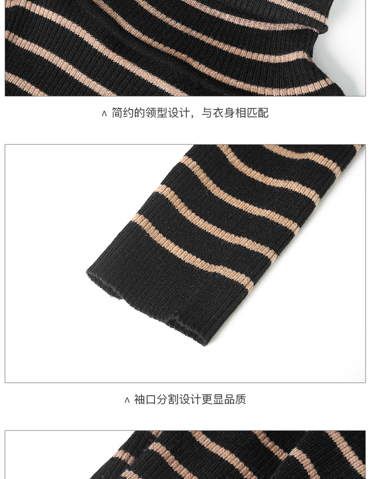 C位条纹针织衫 复古黑棕条纹 米思阳2025秋冬新款针织衫修身高圆领长袖毛衣女2541