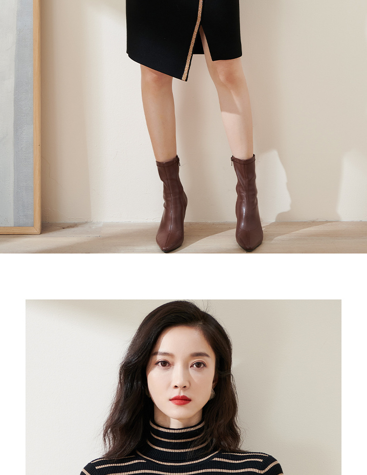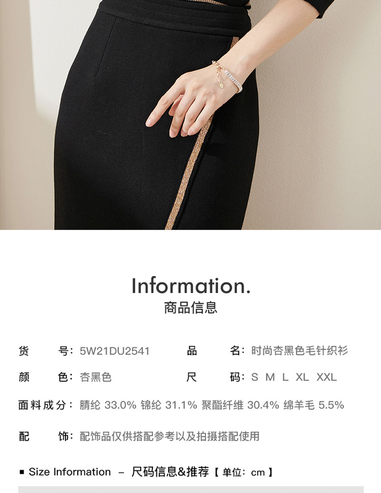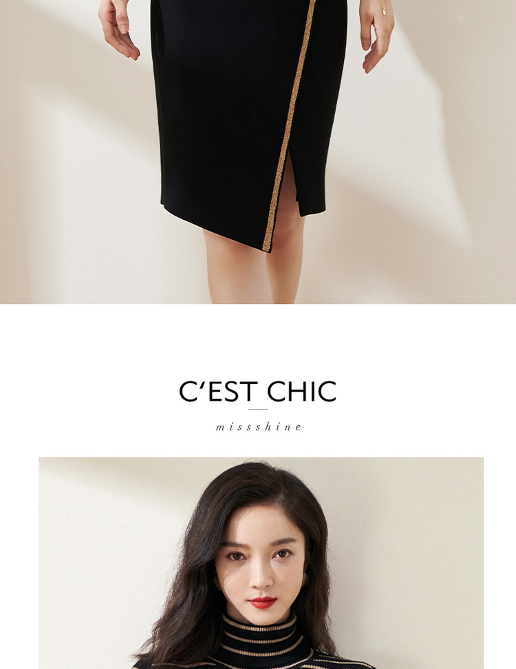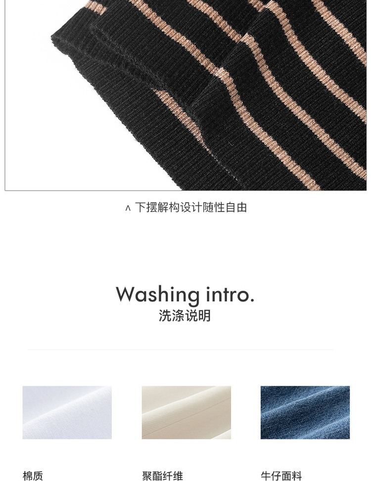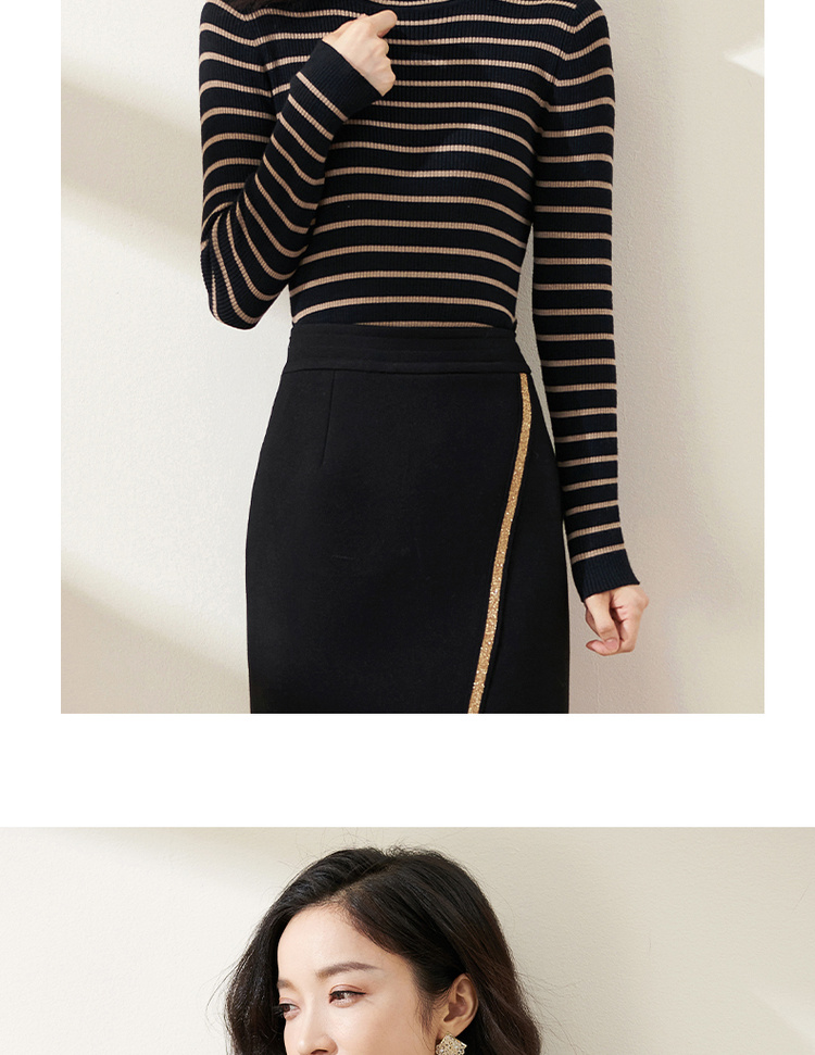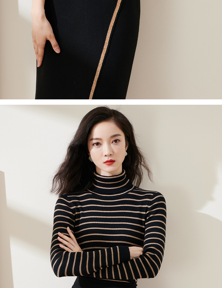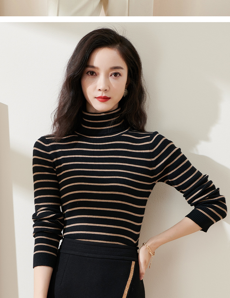 C位条纹针织衫 复古黑棕条纹 米思阳2025秋冬新款针织衫修身高圆领长袖毛衣女2541