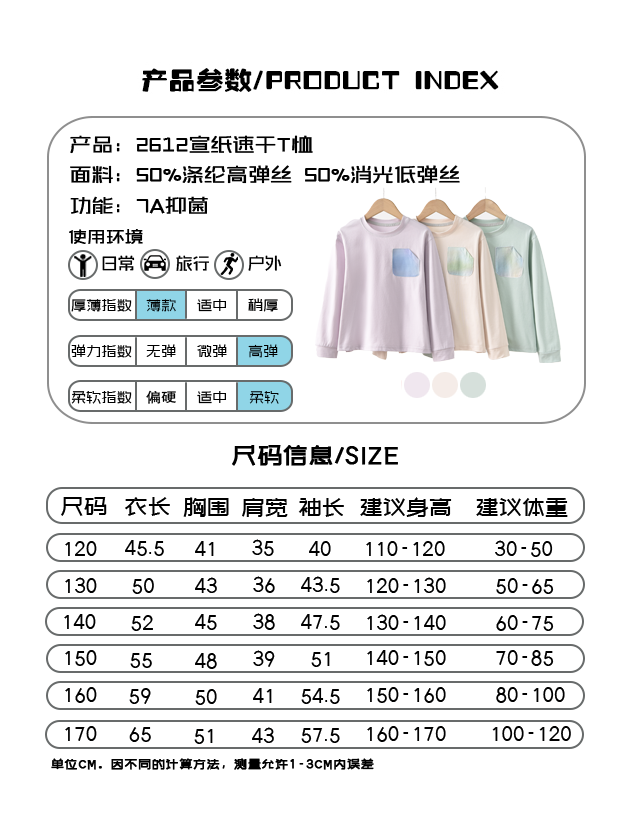 Rarmoell拉慕儿春季新款儿童宣纸速干T恤男女童户外运动服春秋上衣打底衫