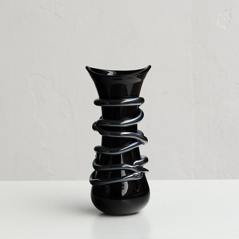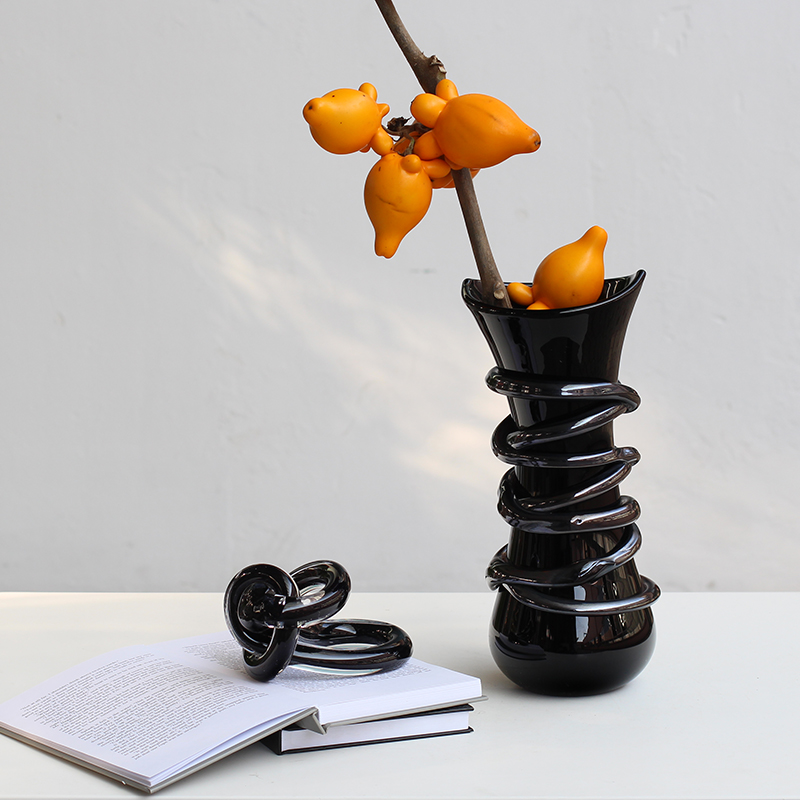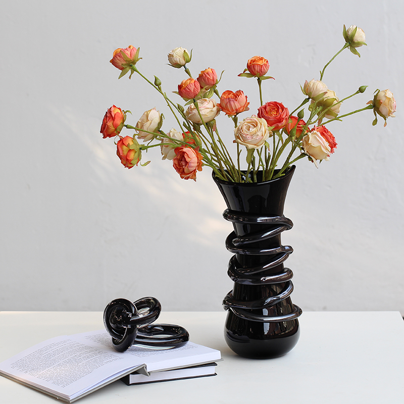 现代简约手工缠丝黑色花瓣口花瓶软装酒店客厅玄关家居装饰摆件