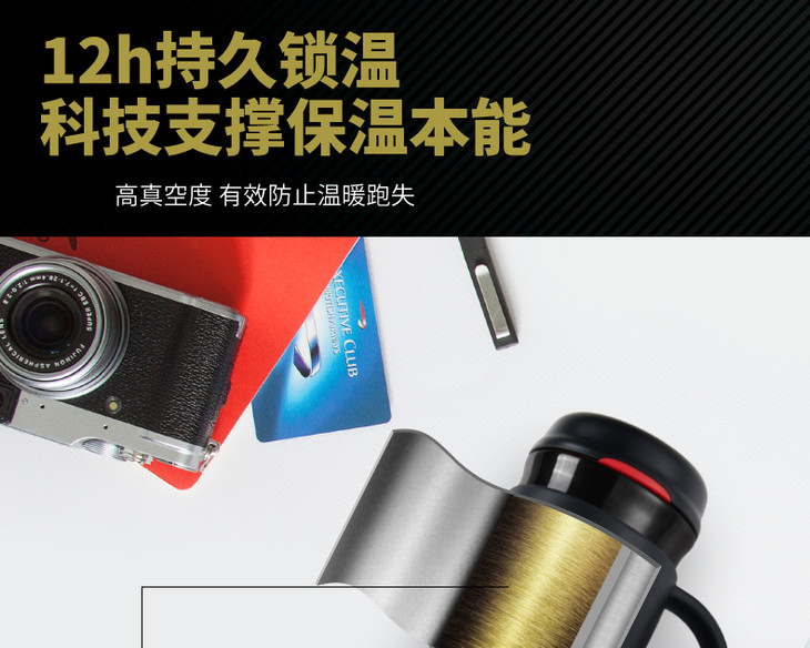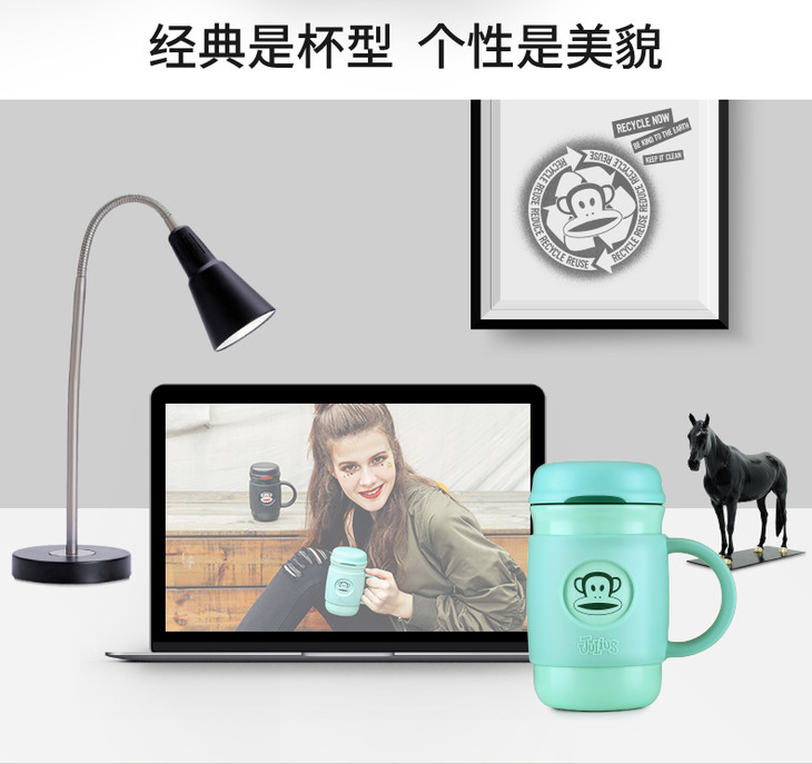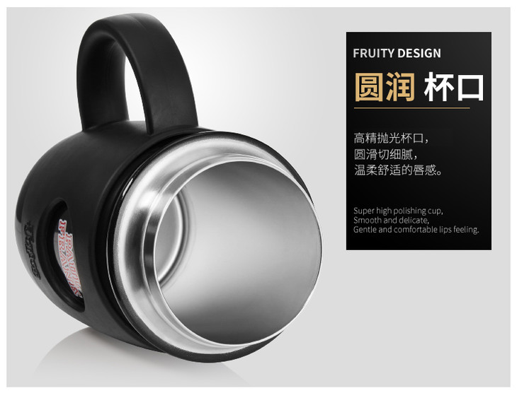 大嘴猴(PaulFrank)PFD005保温杯黑色商务办公水杯带把手真空不锈钢杯子340ML