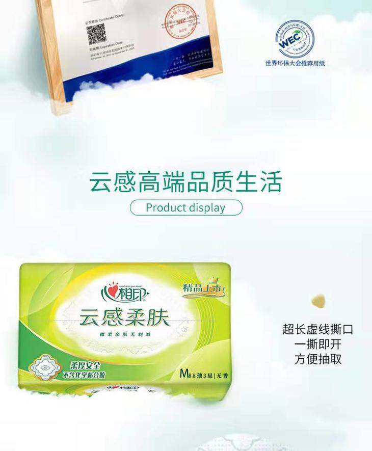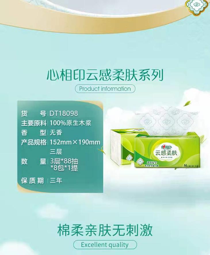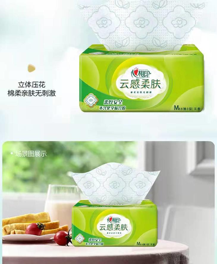 心相印云感系列88抽三层立体压花塑装纸面巾8包