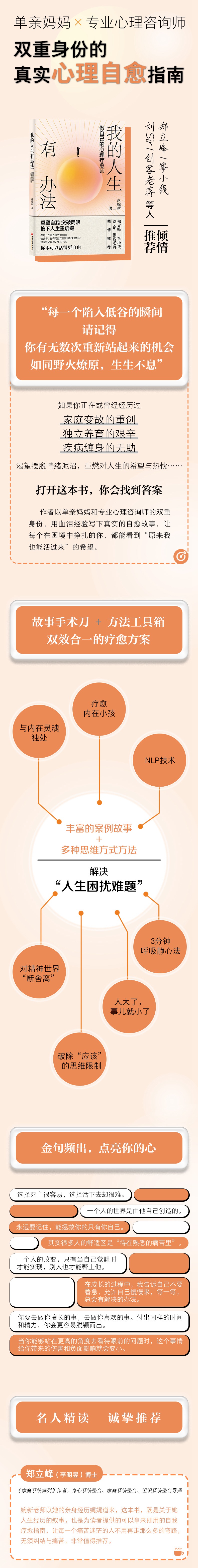 2.单*妈妈×心理咨询师,双重身份的真实自愈指南。如果你正在或曾经经历过家庭变故的重创、独立养育的艰辛、疾病缠身的无助,渴望摆脱情绪泥沼,重燃对人生的希望与热忱……这本书,让每个在困境中挣扎的你,*能看到“原来我也能活过来”的希望。学会做自己的心理疗愈师,汲取冲破黑暗的力量。
