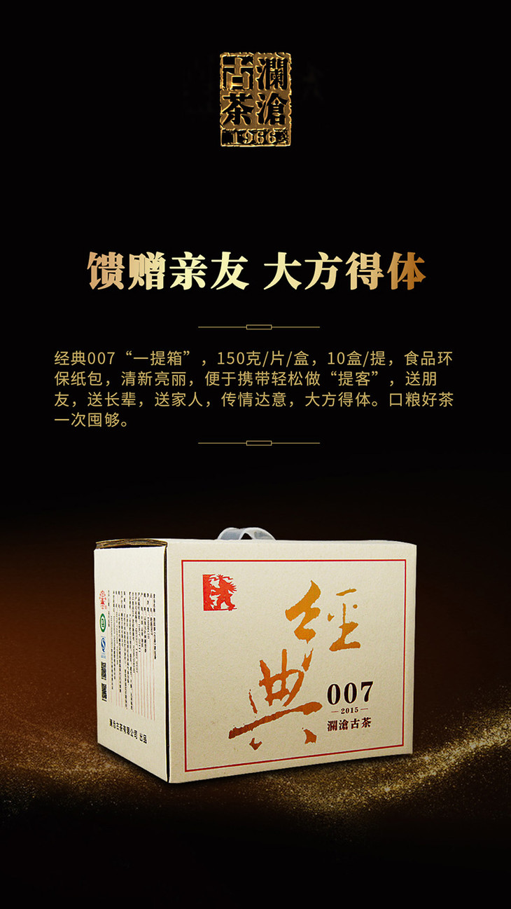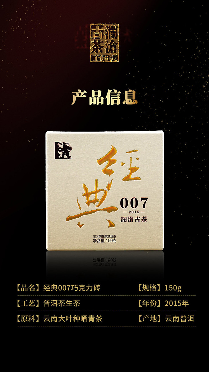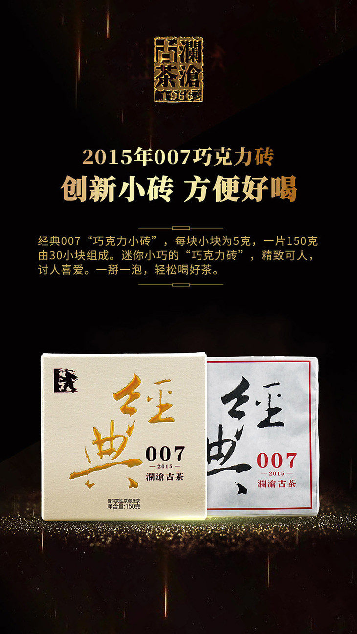 澜沧古茶2015经典007巧克力砖普洱茶生茶云南茶叶老茶150g*10片