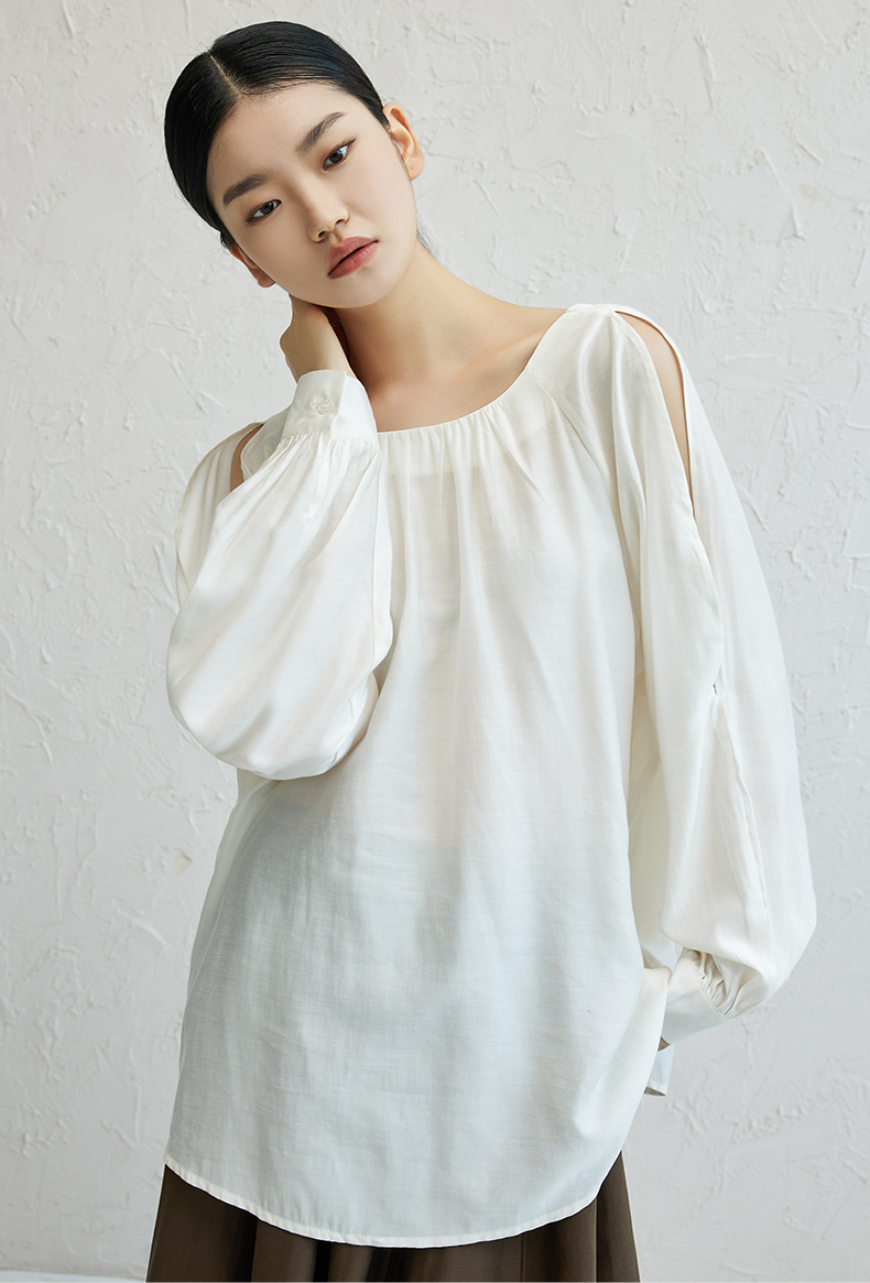 oldcolour简约透气薄款衬衫2022秋新款慵懒露肩设计感小众上衣女