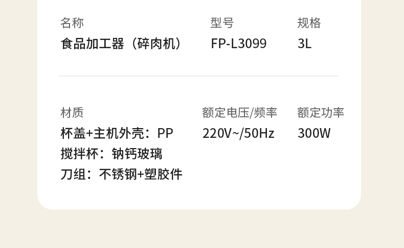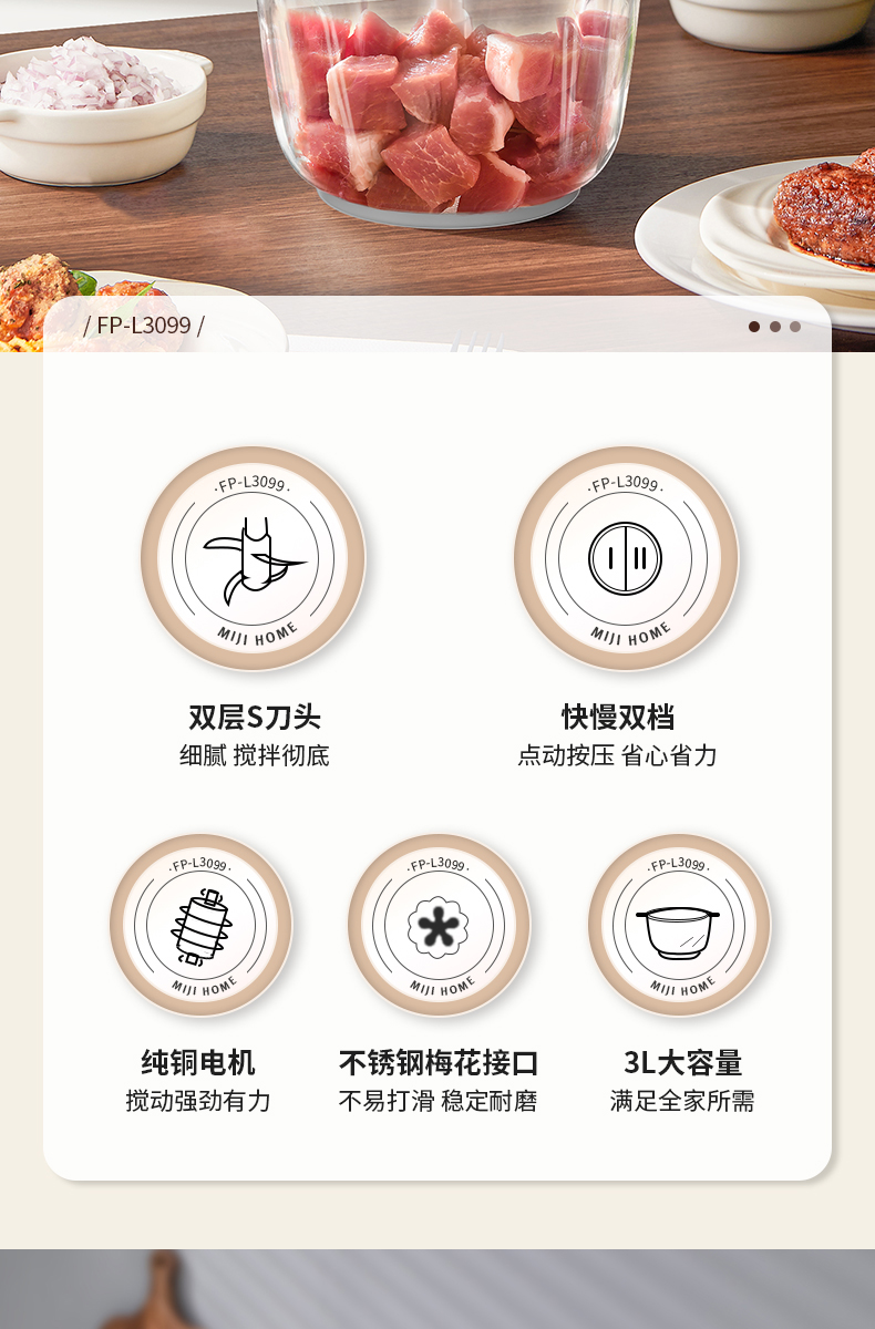 米技绞肉机3升容量FP-L3099-S