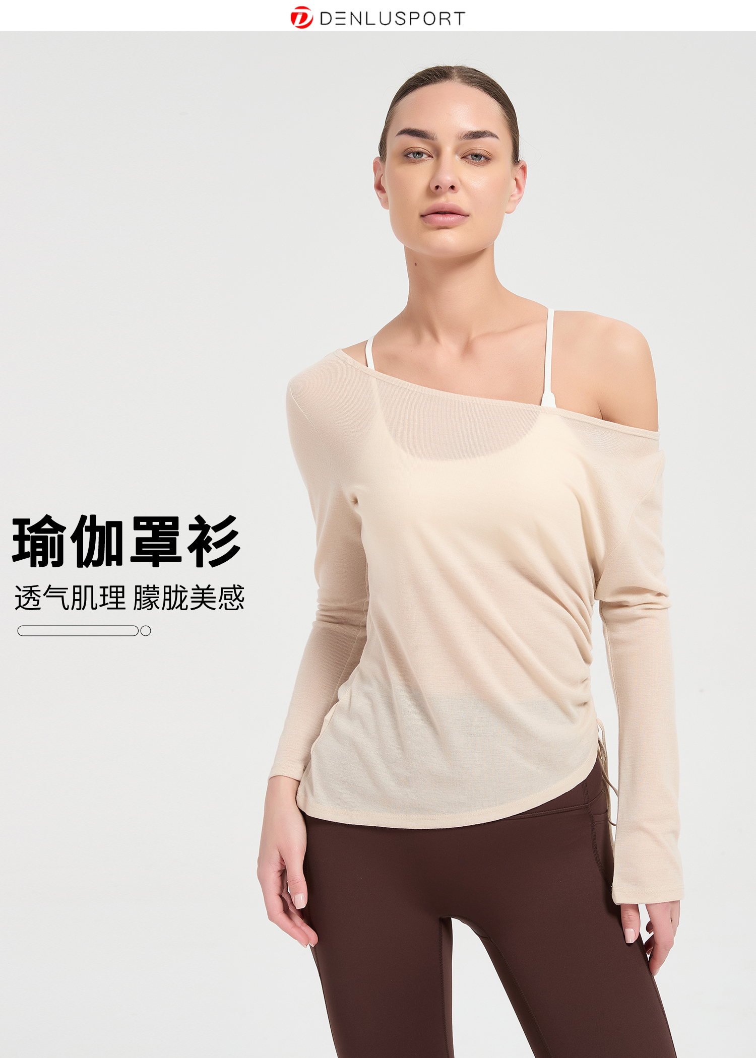 瑜伽服女罩衫春季宽松显瘦长袖绝美普拉提运动上衣DY66229#