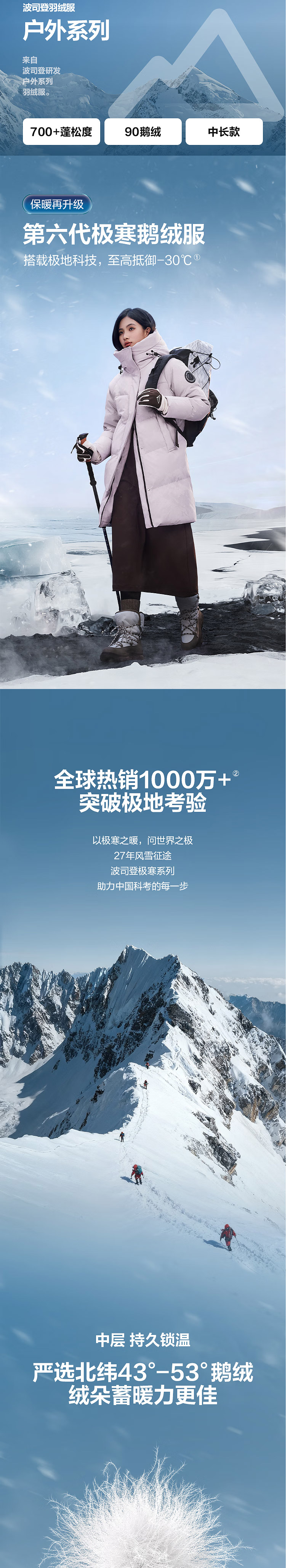 波司登25新款羽绒服女鹅绒90绒极寒连帽外套B250242304