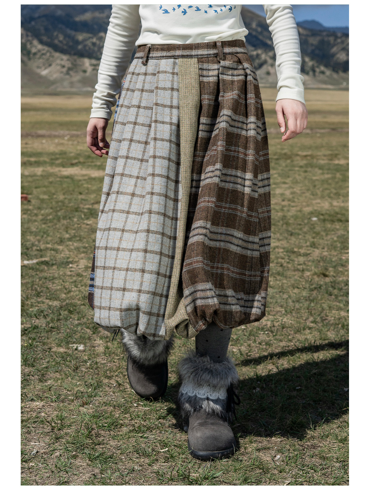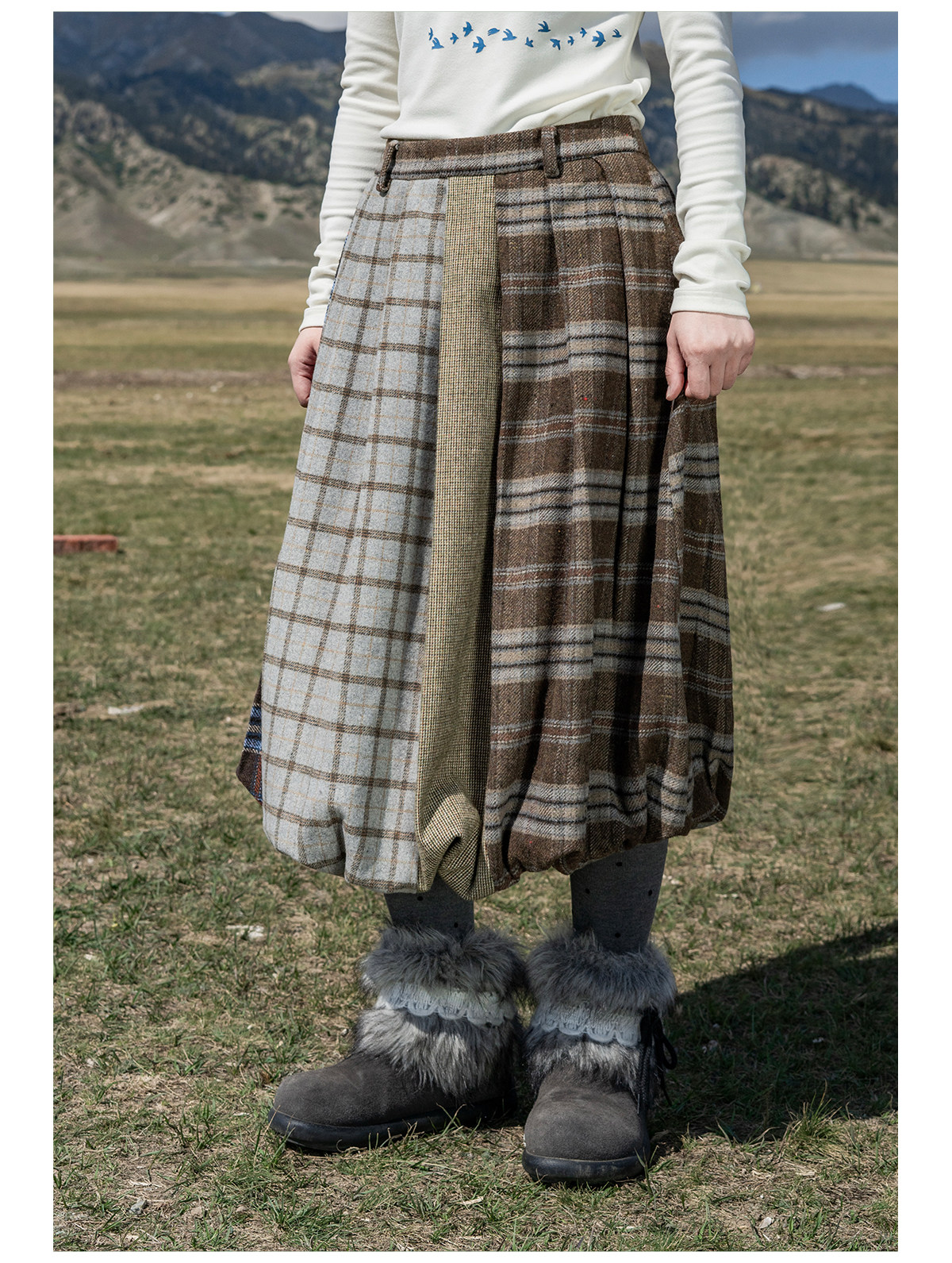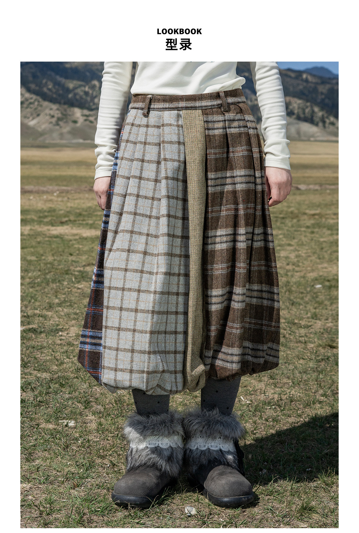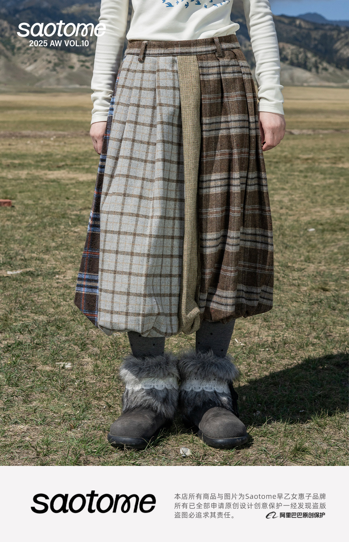 早乙女惠子saotome/STMBQ14010/毛呢格子拼接花苞半裙
