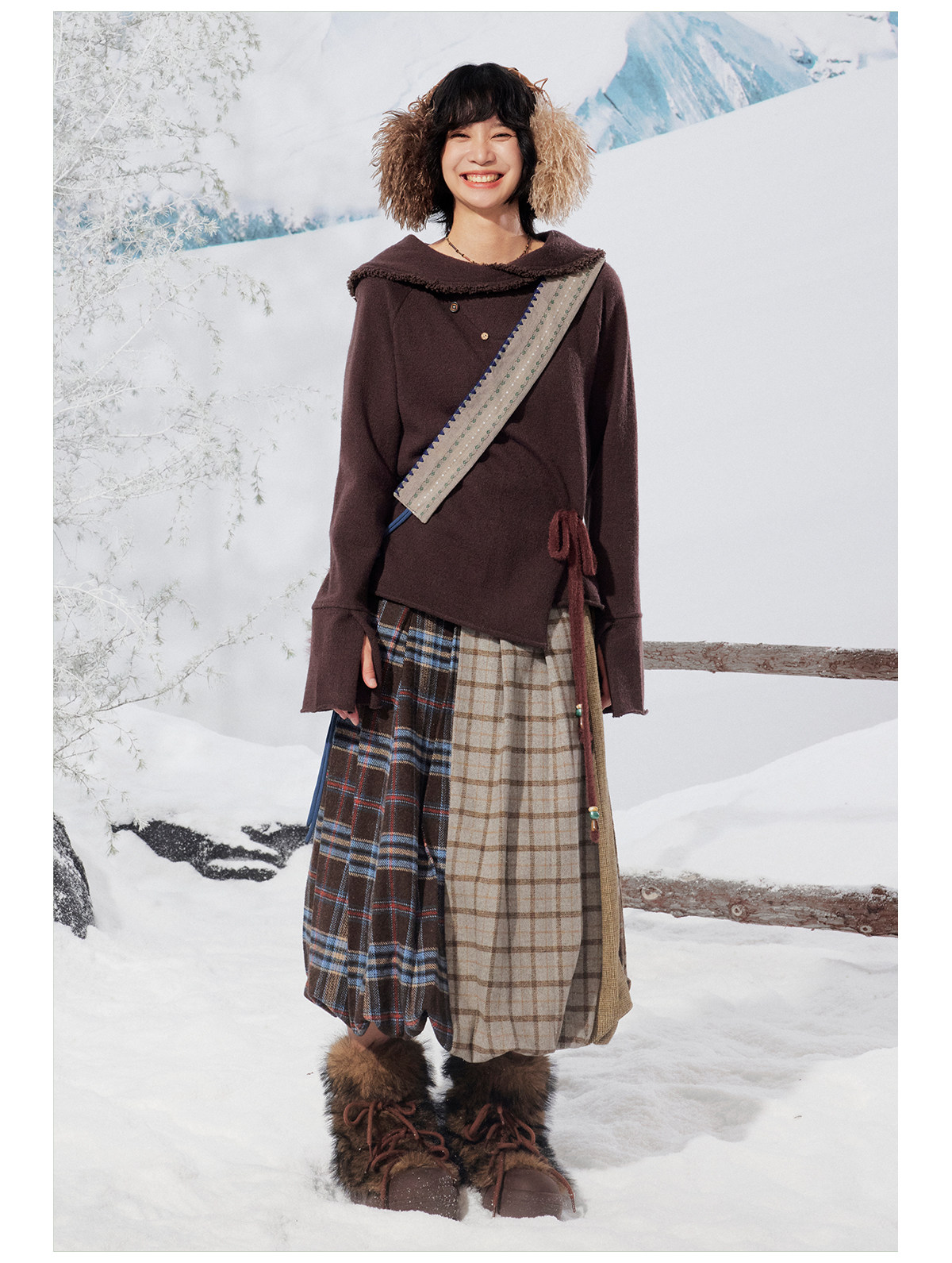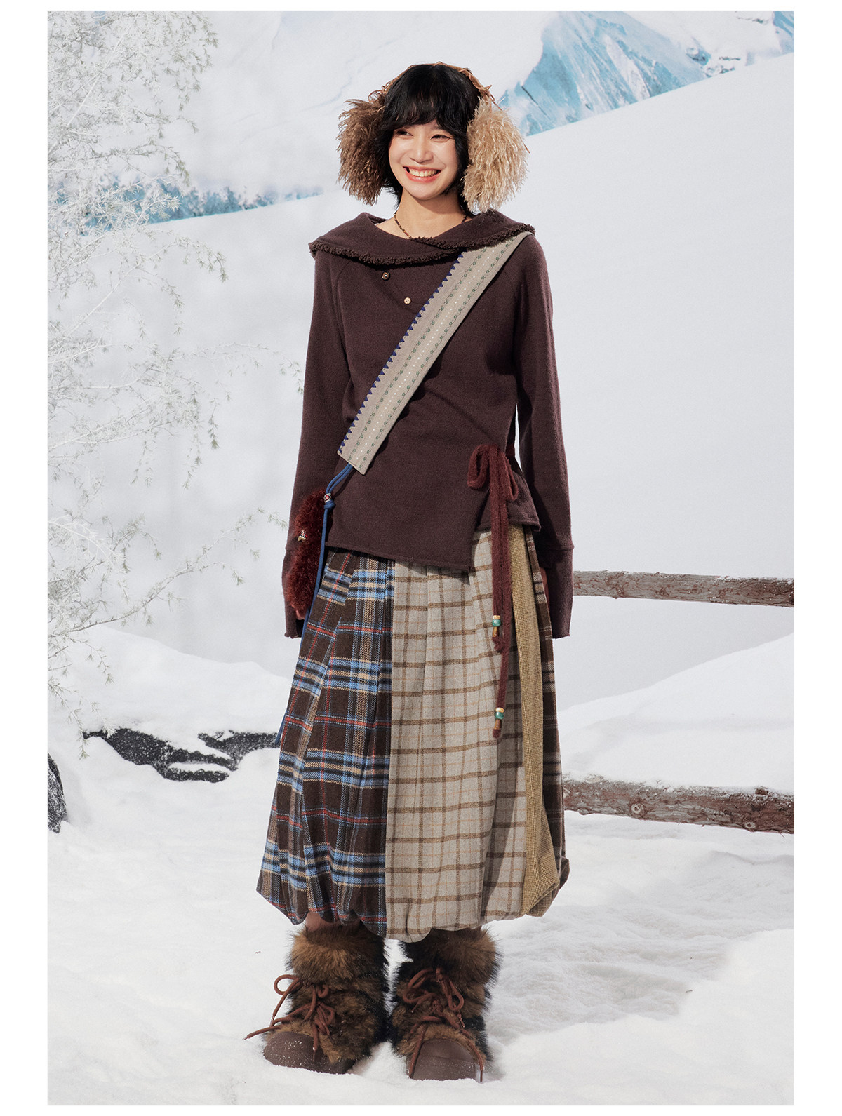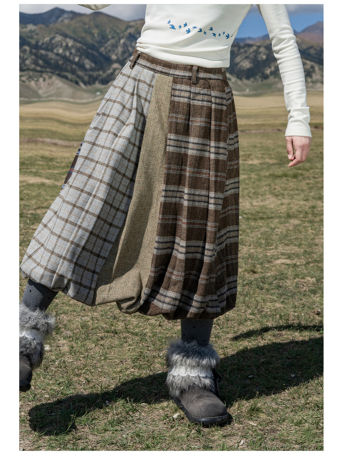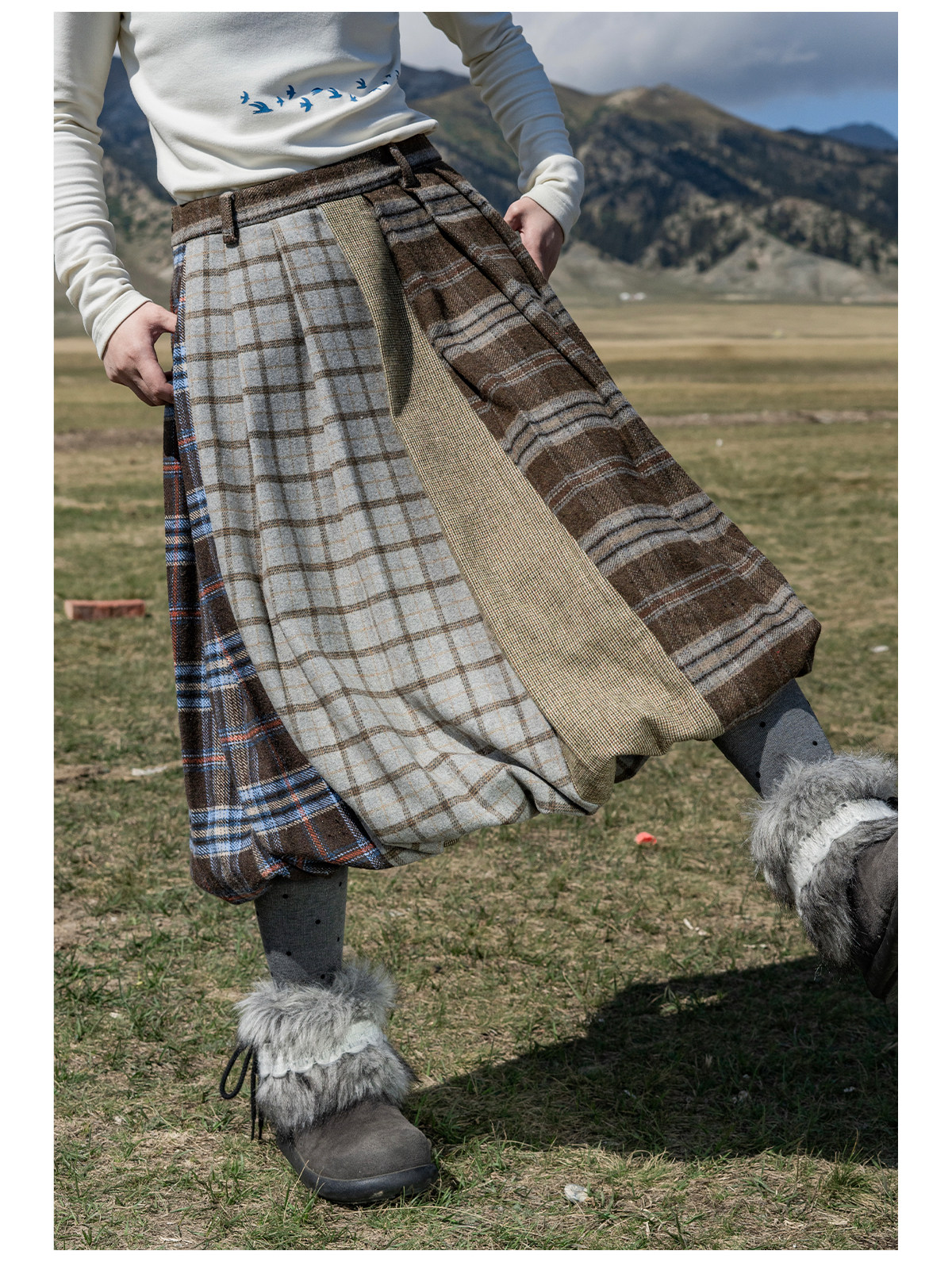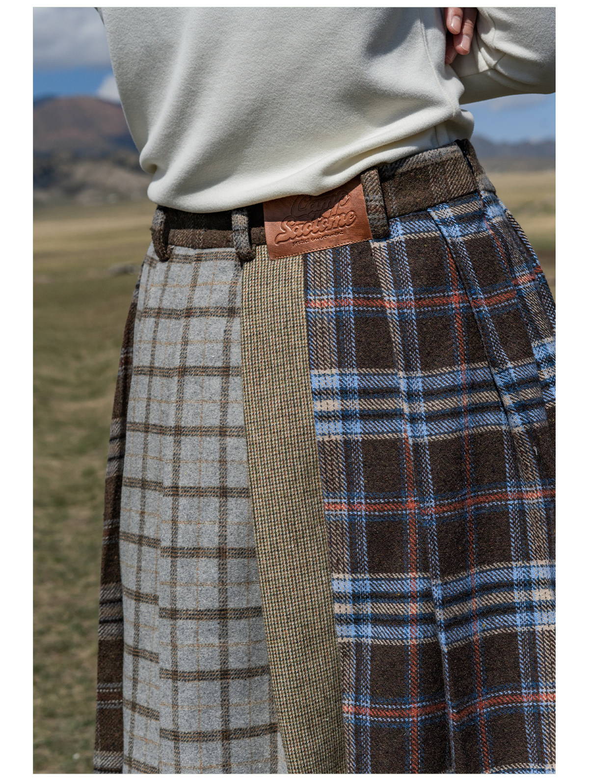 早乙女惠子saotome/STMBQ14010/毛呢格子拼接花苞半裙