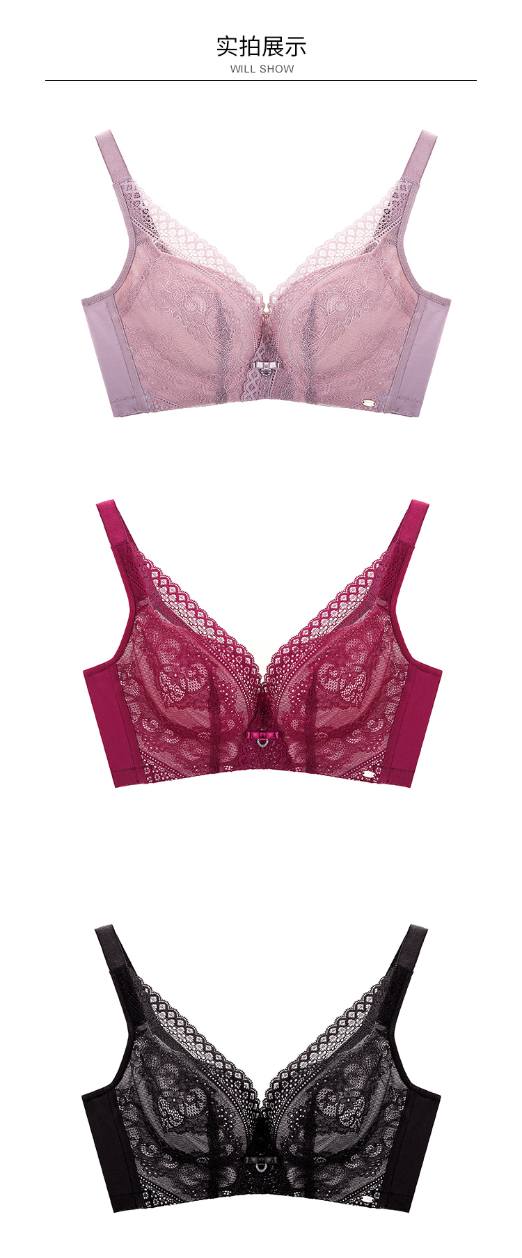 皇家丽美内衣女小胸聚拢无钢圈调整型收副乳上托内衣性感蕾丝加宽肩带美背文胸WWJ021-3