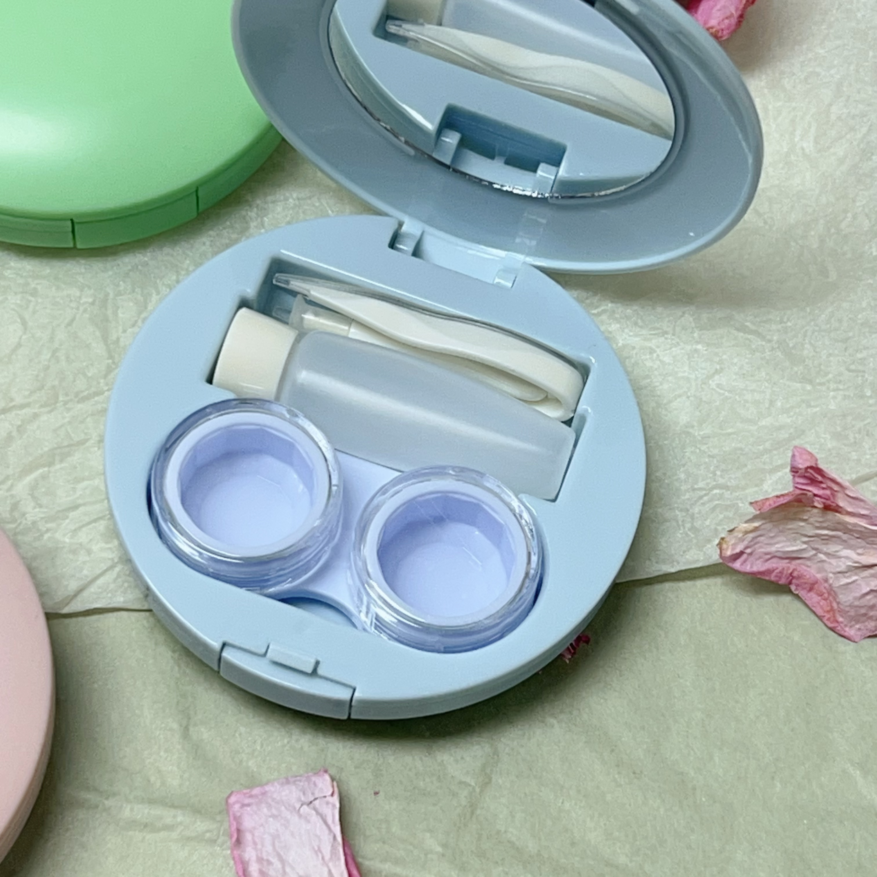 简约净面隐形眼镜盒美瞳盒护理盒双联盒伴侣盒纯色91七收纳盒