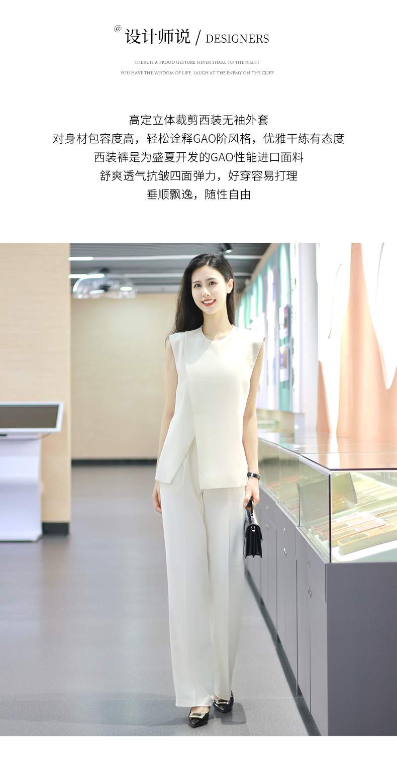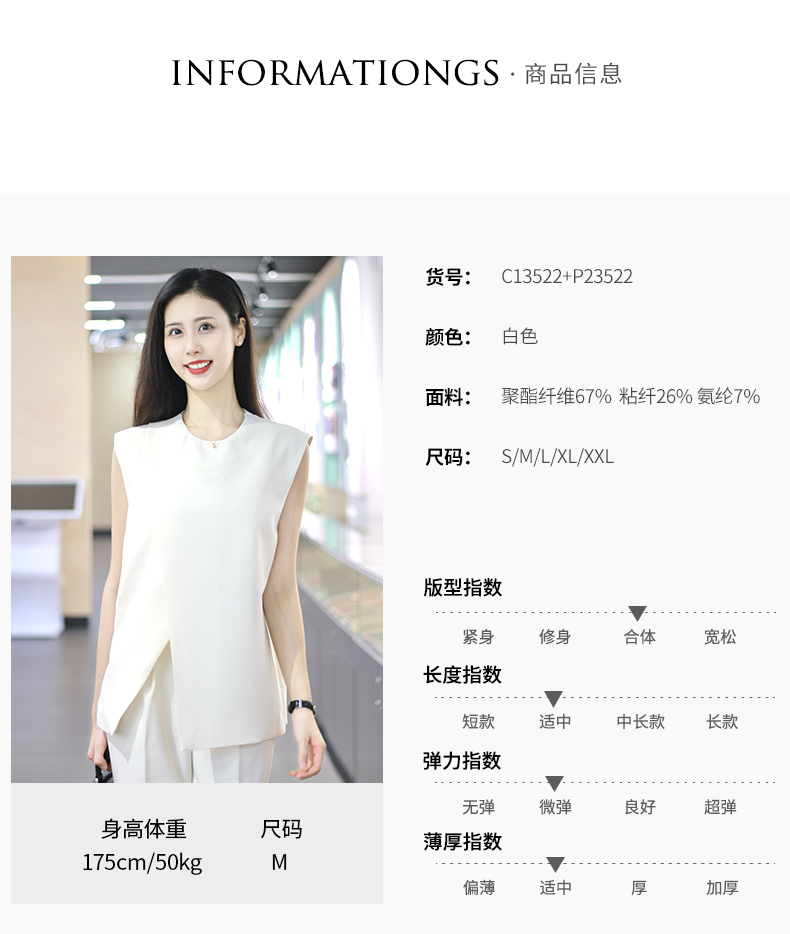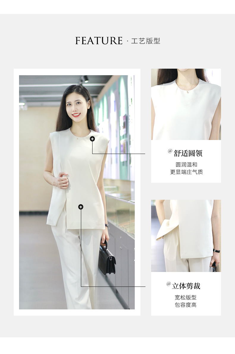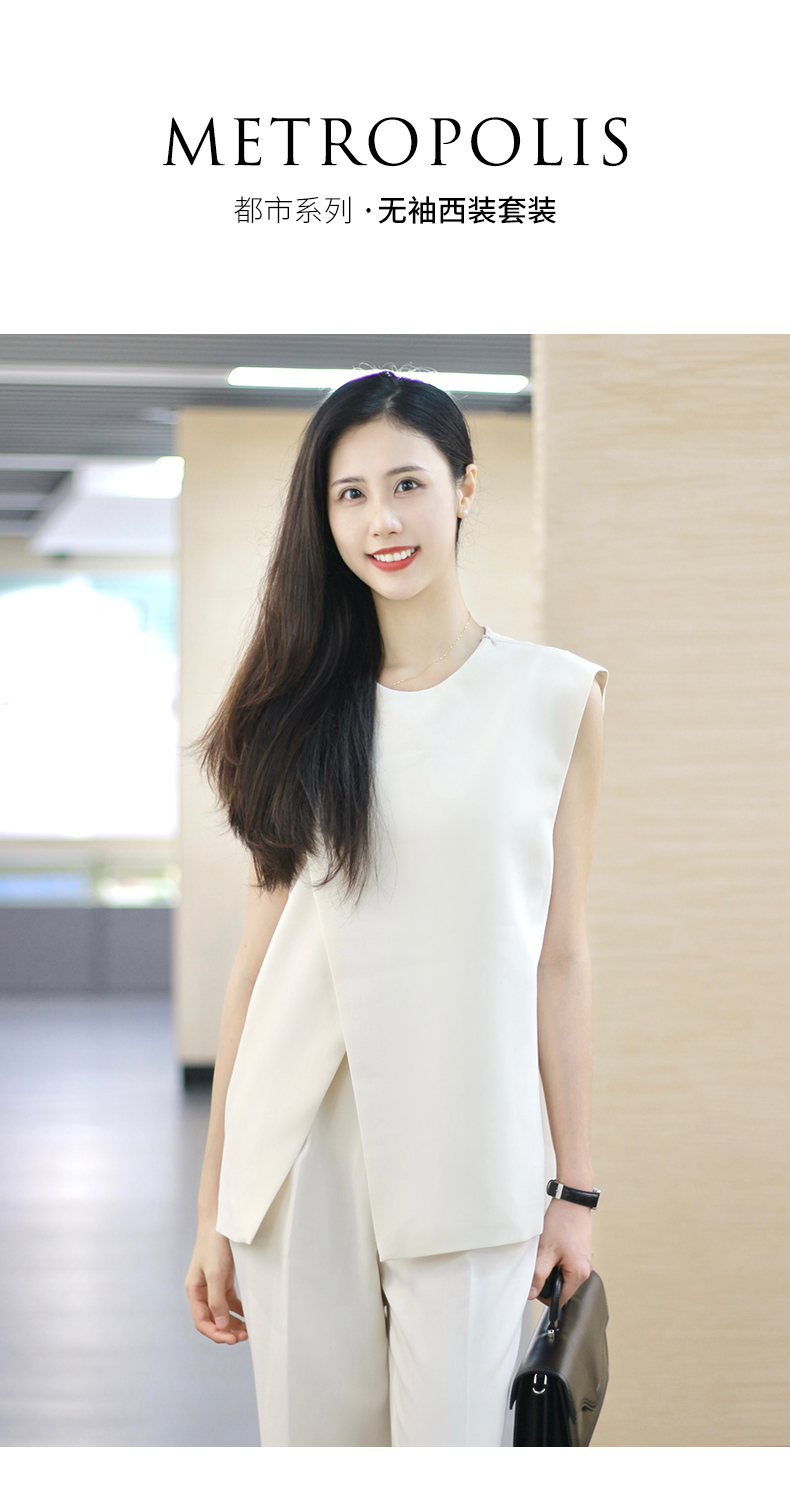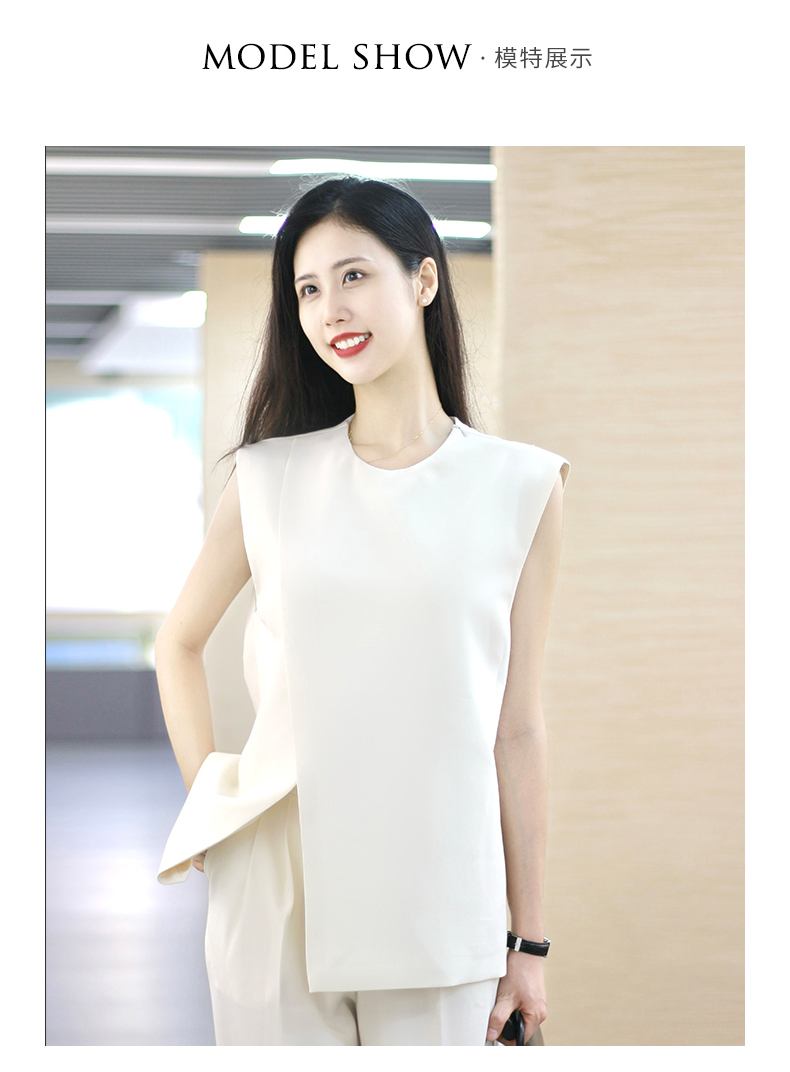 IWY/米白无袖西装上衣夏季新款小众设计感下摆开叉工作服C13522+P23522