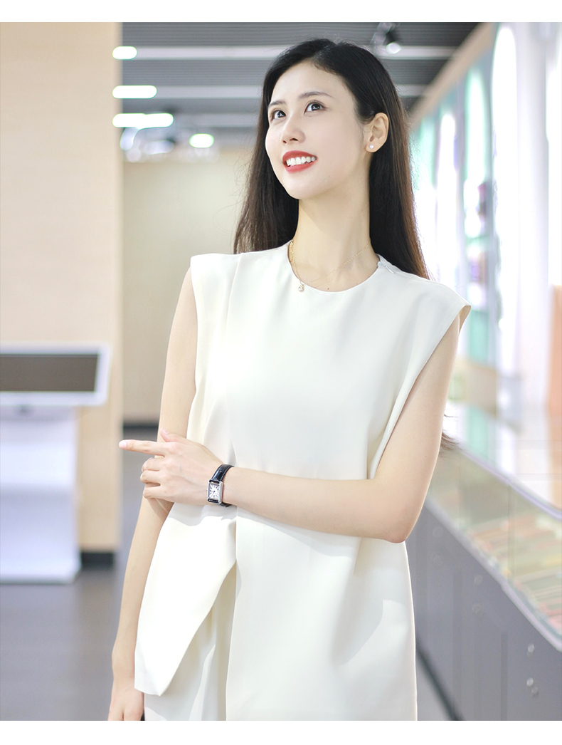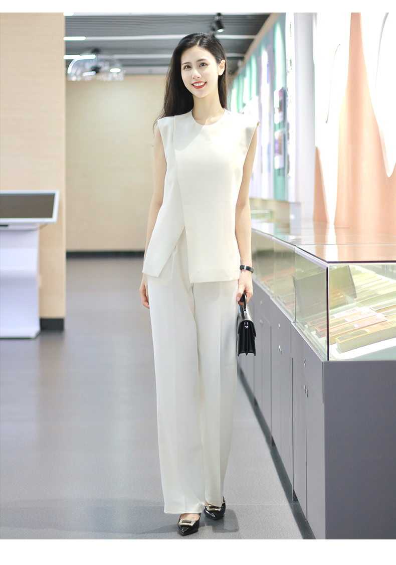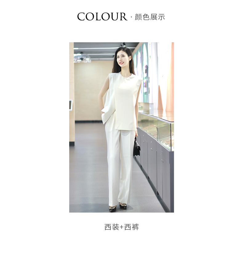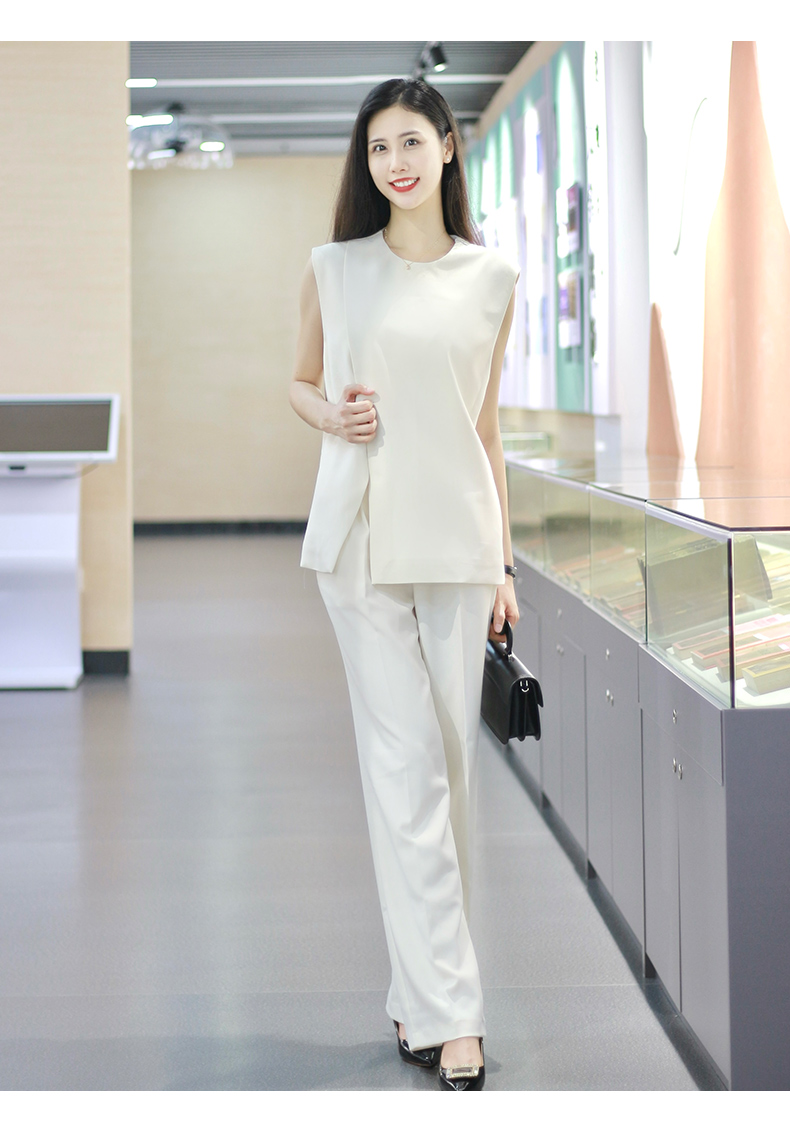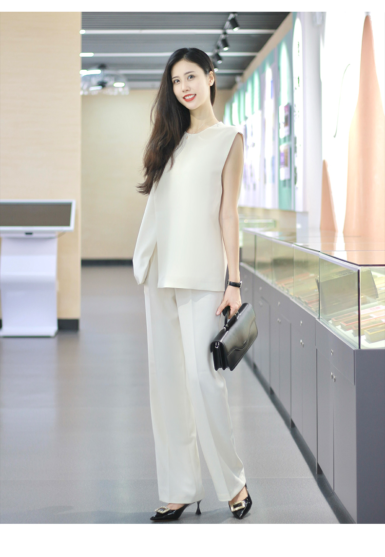 IWY/米白无袖西装上衣夏季新款小众设计感下摆开叉工作服C13522+P23522