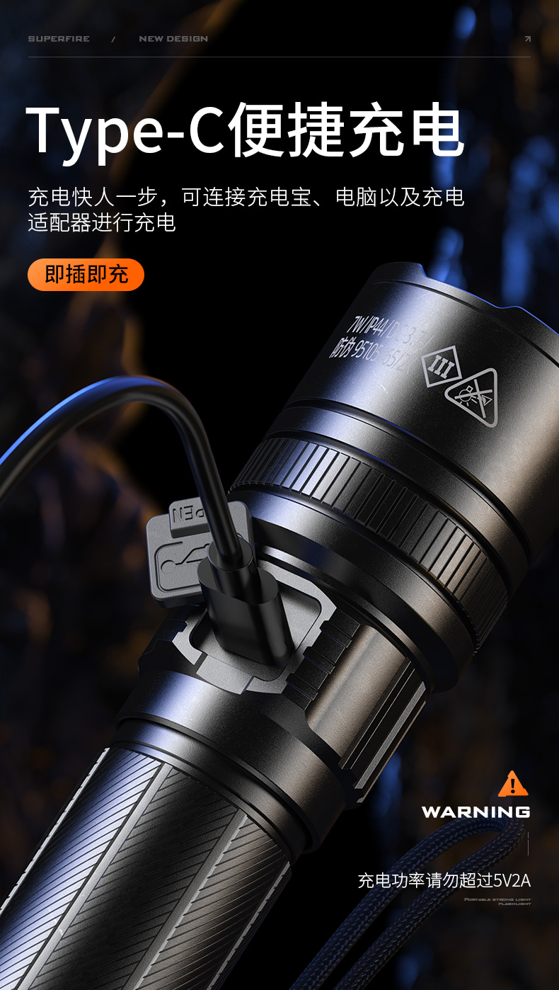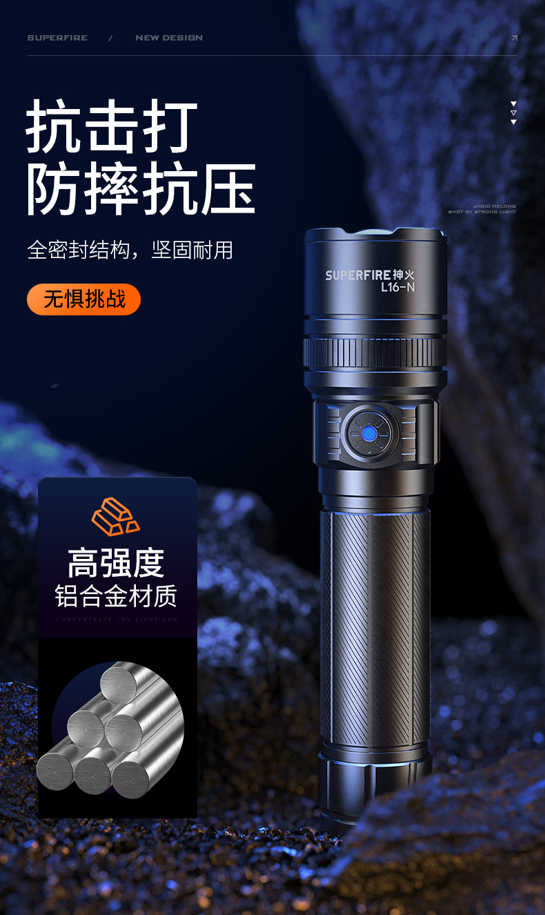 SUPERFIRE神火L16-N手电筒伸缩调焦强光远射充电式户外家用变焦手电