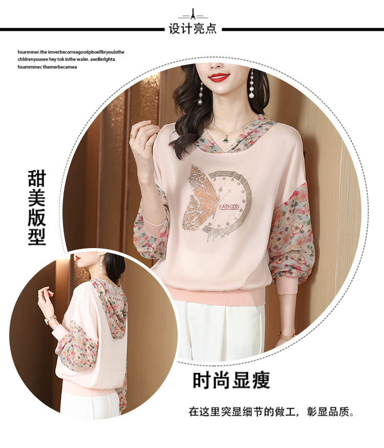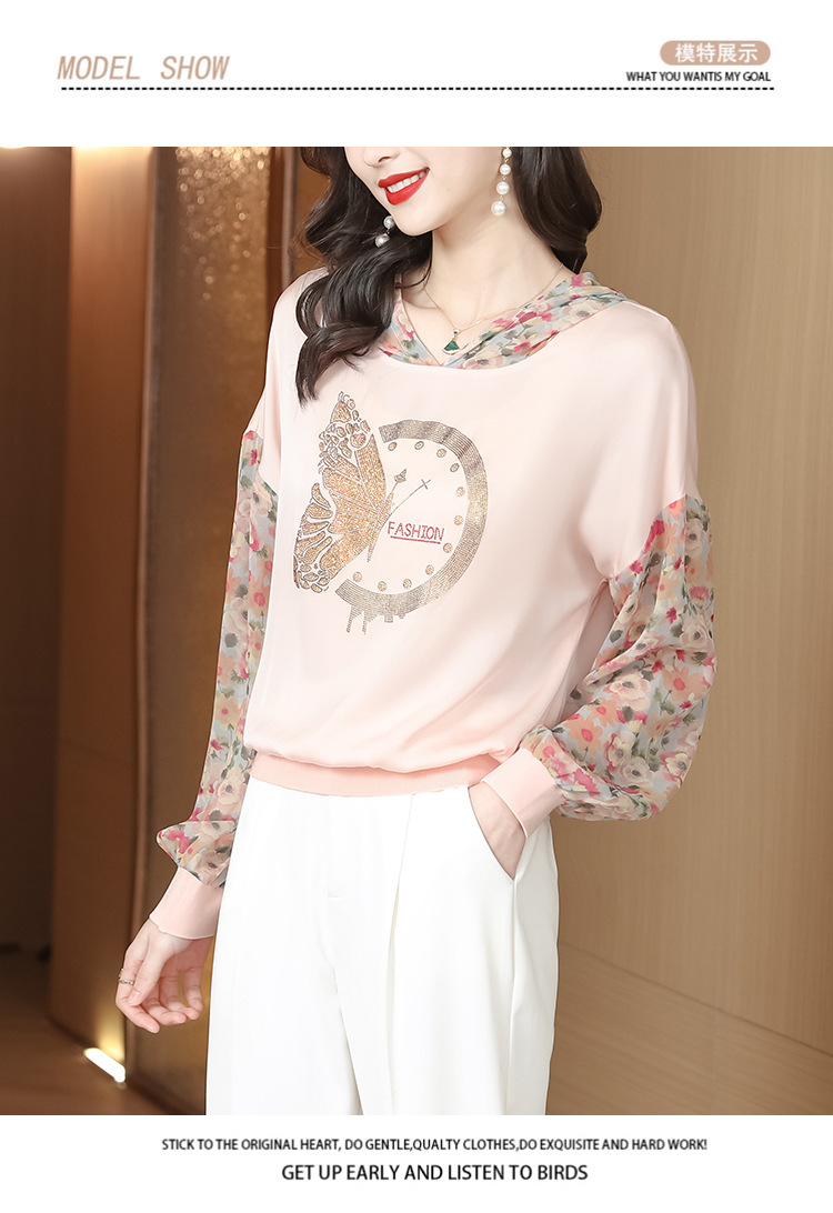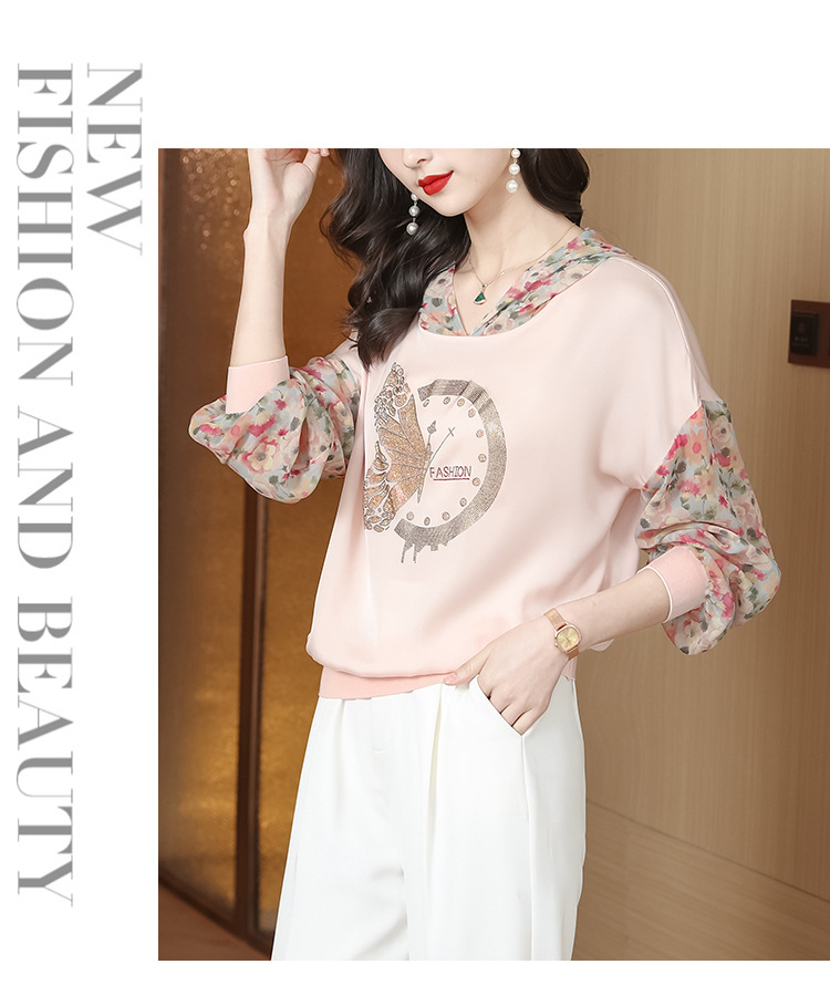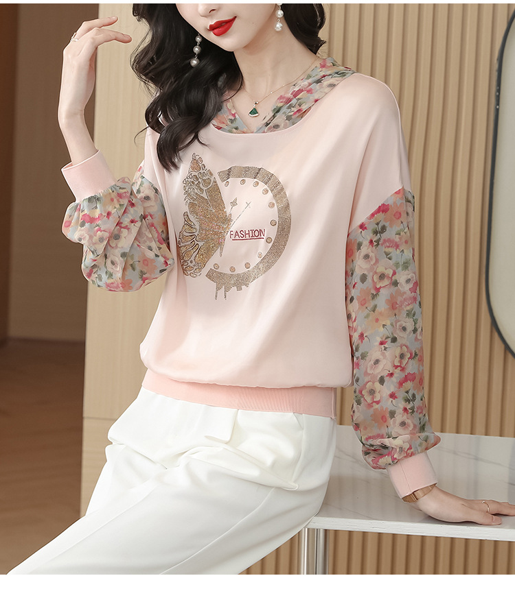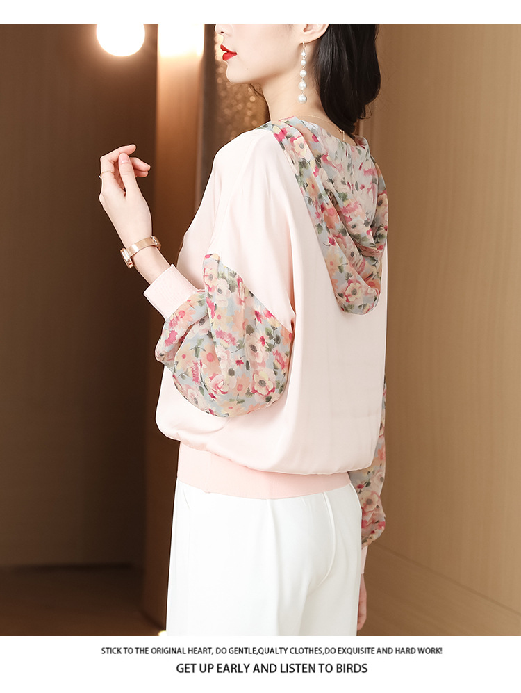 宽松休闲,连帽印花上衣粉色卫衣KQL-976