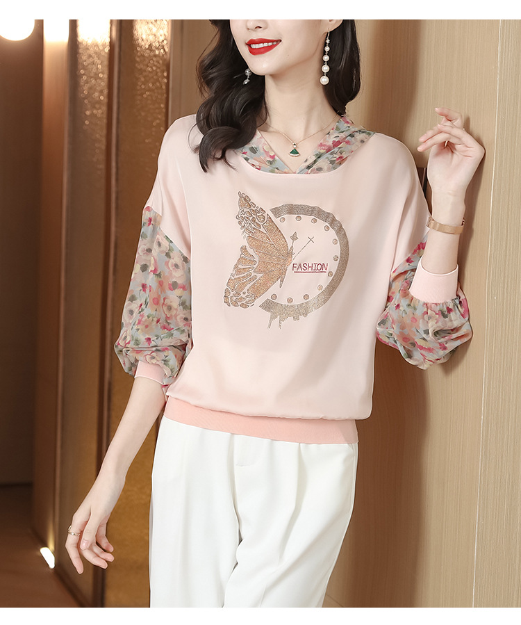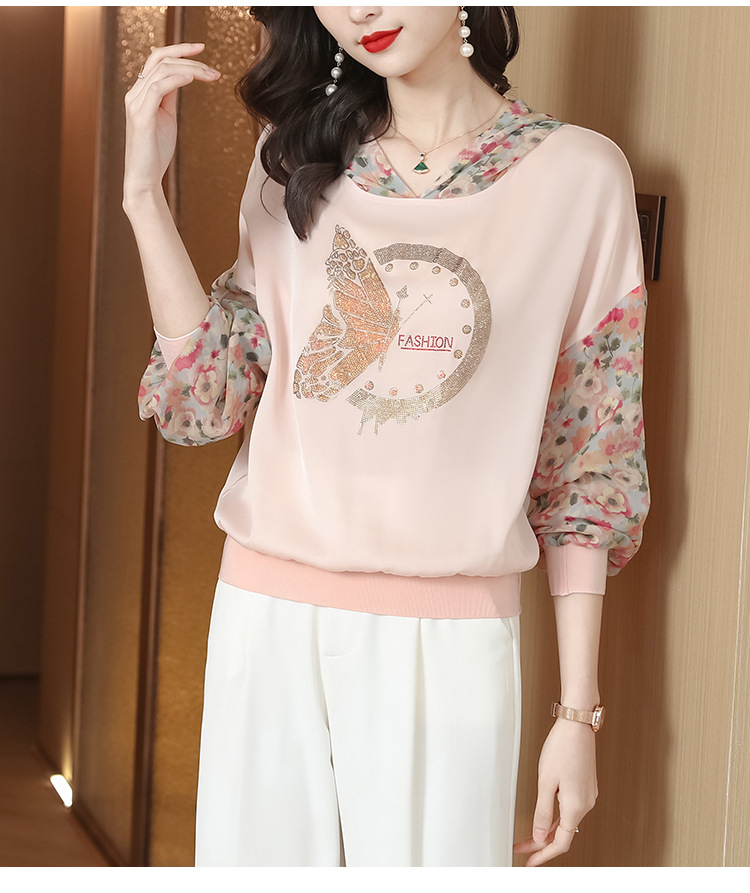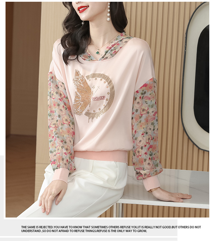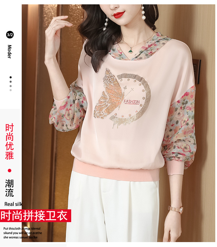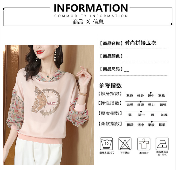 宽松休闲,连帽印花上衣粉色卫衣KQL-976