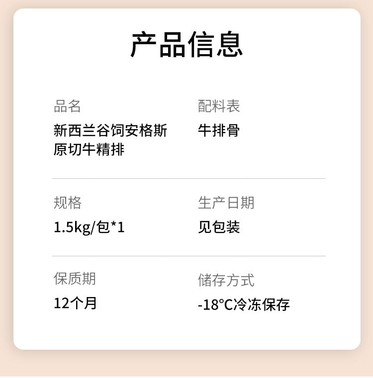 大黄鲜森 新西兰安格斯原切牛精排 1500g