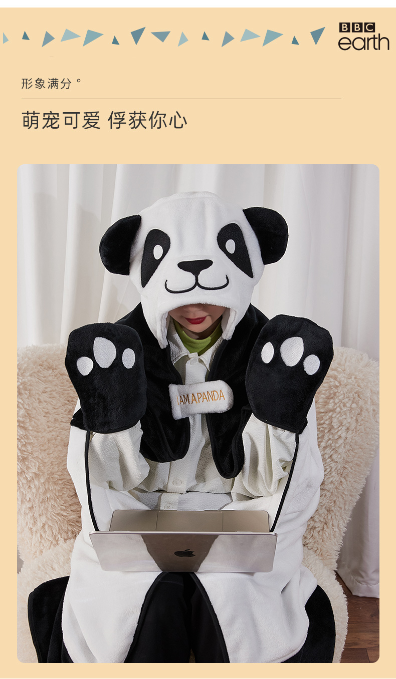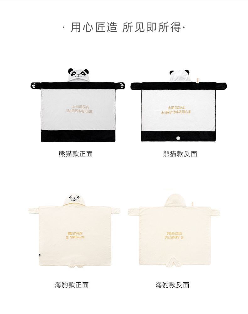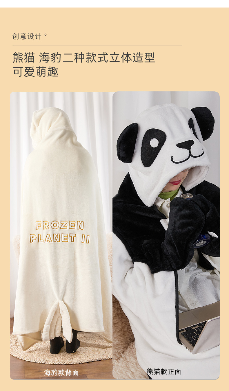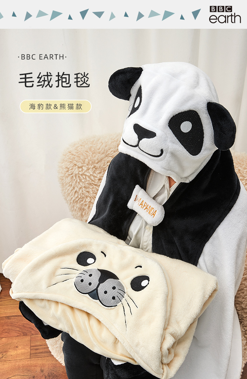 BBC EARTH 萌趣卡通海豹熊猫毛绒抱毯披肩毛毯 再生聚酯纤维 空调毯