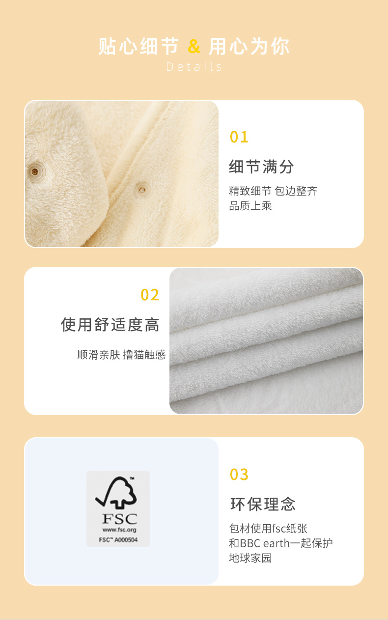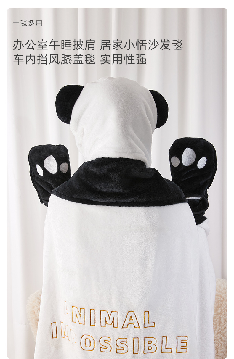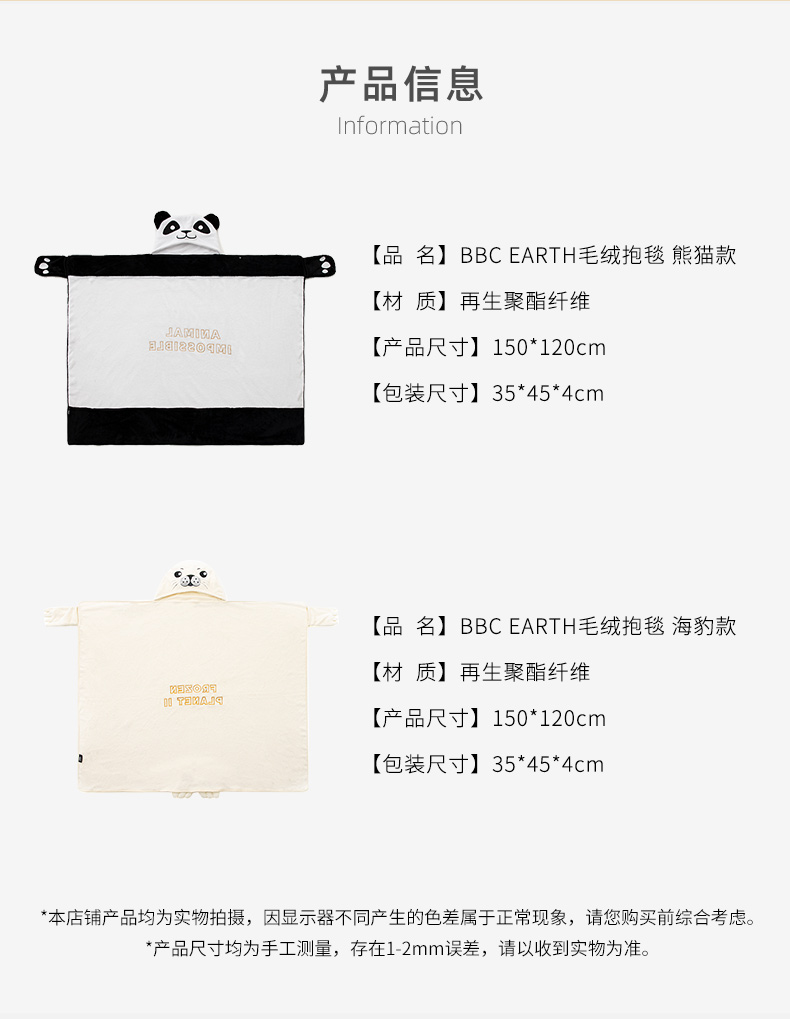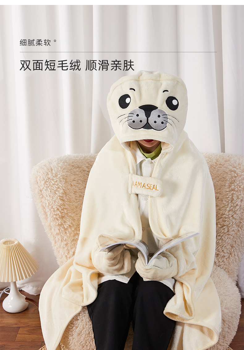 BBC EARTH 萌趣卡通海豹熊猫毛绒抱毯披肩毛毯 再生聚酯纤维 空调毯