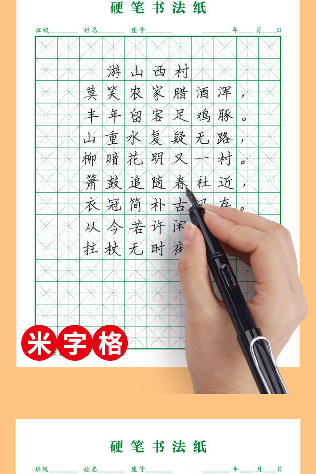 米字格练字本硬笔书法纸小学生成人绿色田字格钢笔专用书写作品纸