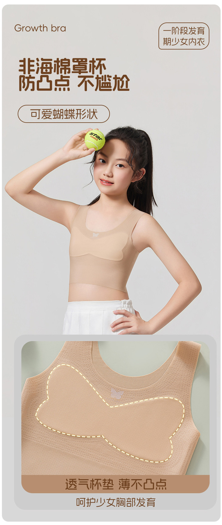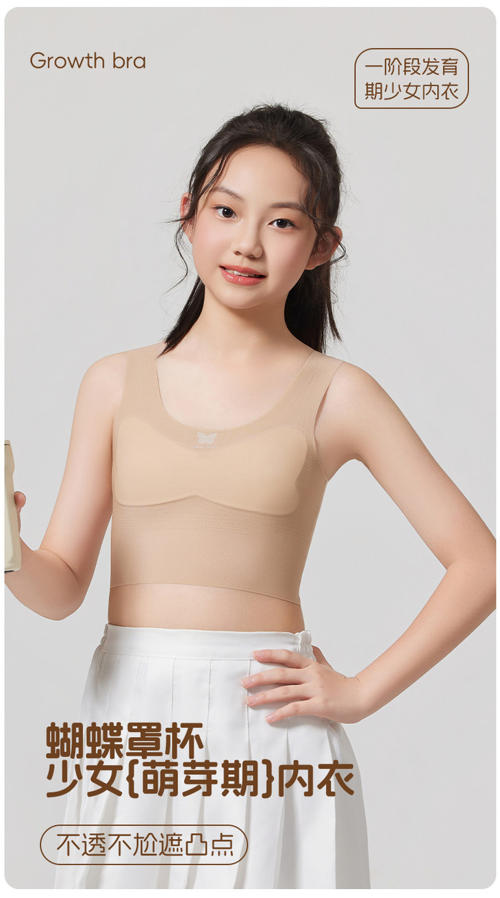 【MUBENMI少女内衣❤1阶蝴蝶杯背心#649】萌芽期:适合8-12岁,胸部刚刚开始发育期的小女孩,少女的小害羞被稳稳接住,自在又安心😌
