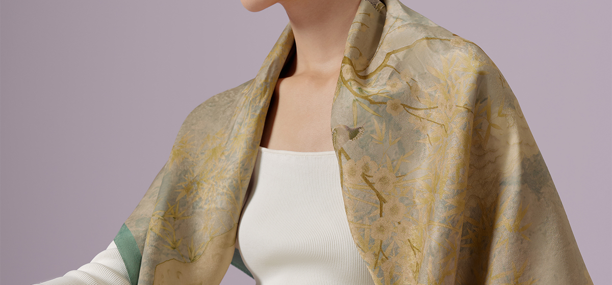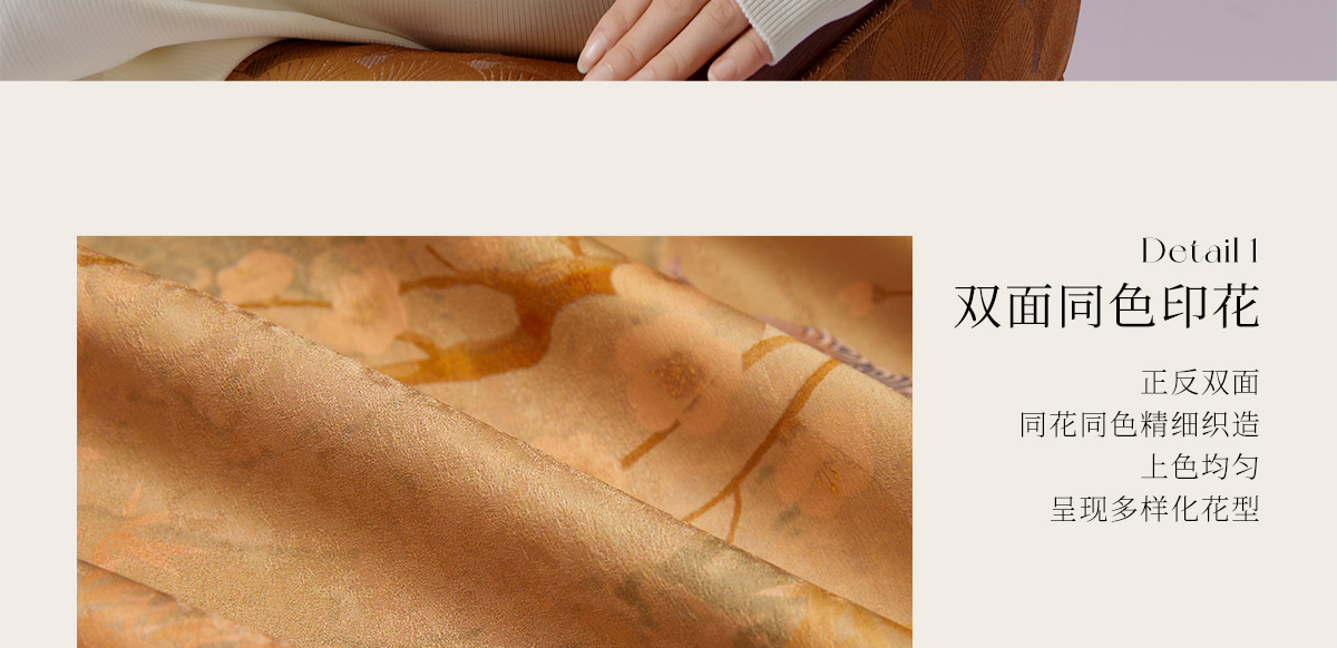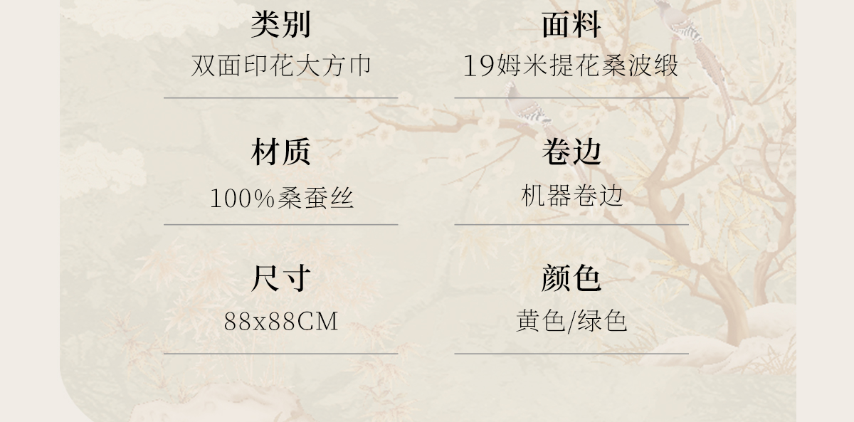 万事利“雀枝锦”88厘米GB双面印花大方巾
