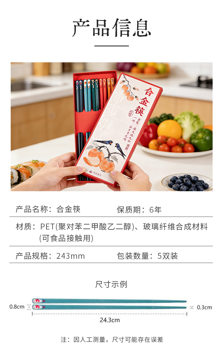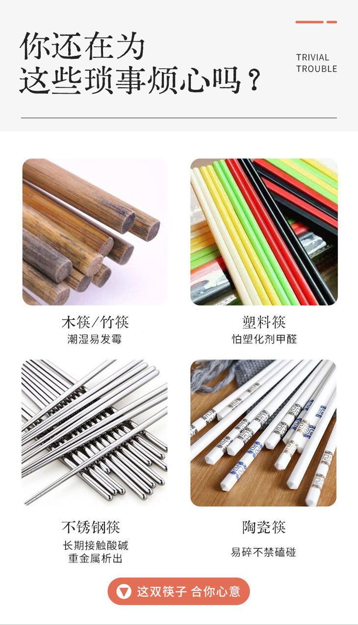 朕的潮代合金筷 PET+玻纤合成材料 不发霉不变形 不吸油污易清洗