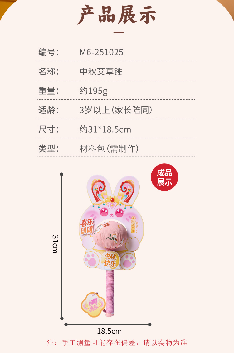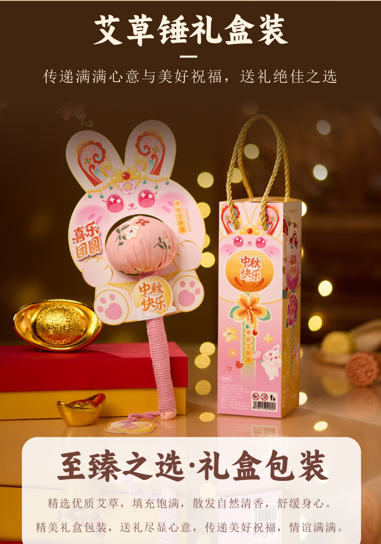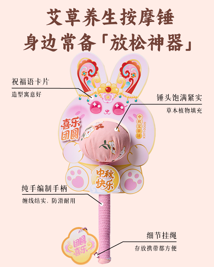 【供】中秋节活动礼物手工diy兔子艾草锤儿童制作材料包养生锤幼儿园
