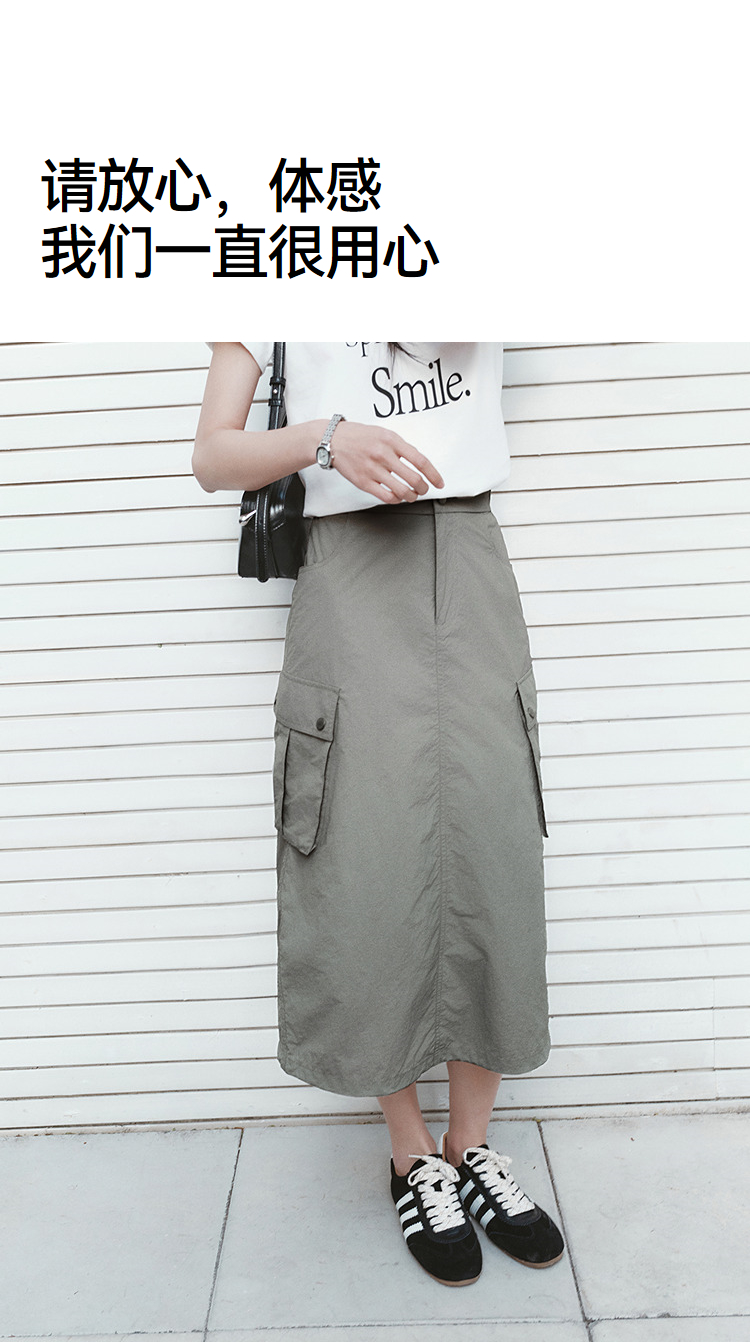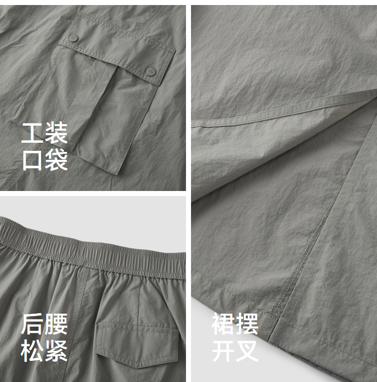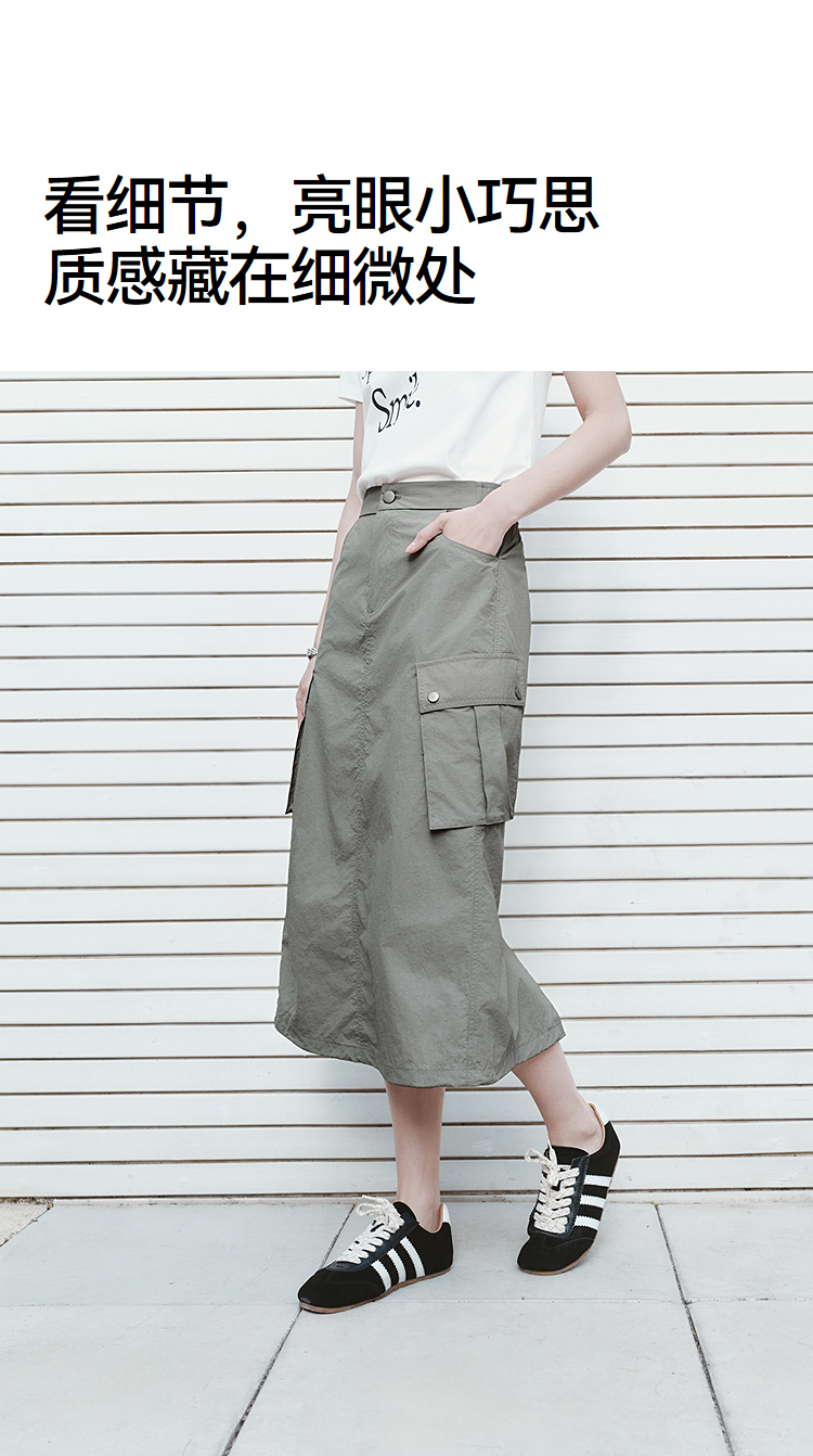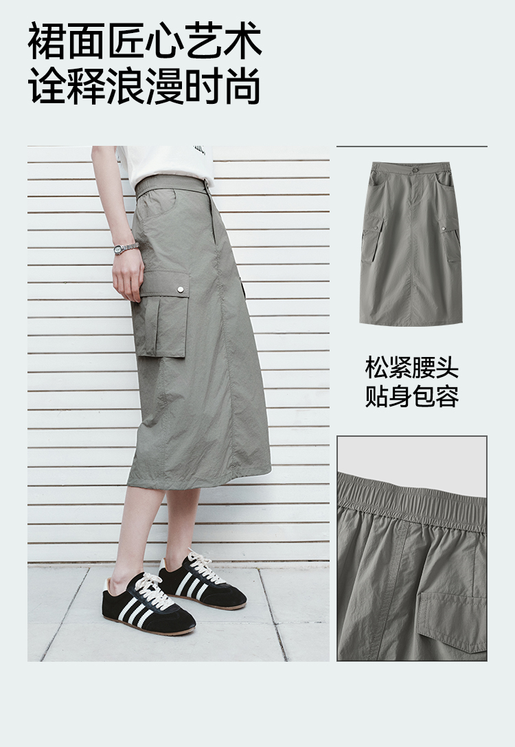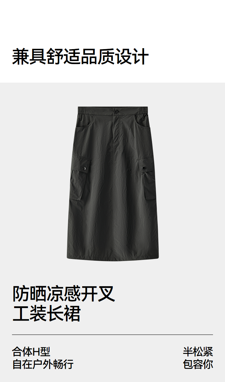 森马半身裙女夏肌理防晒凉感开叉工装裙时尚休闲潮酷高街户外长裙