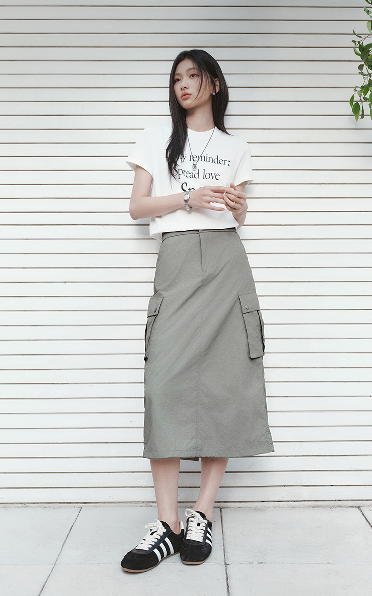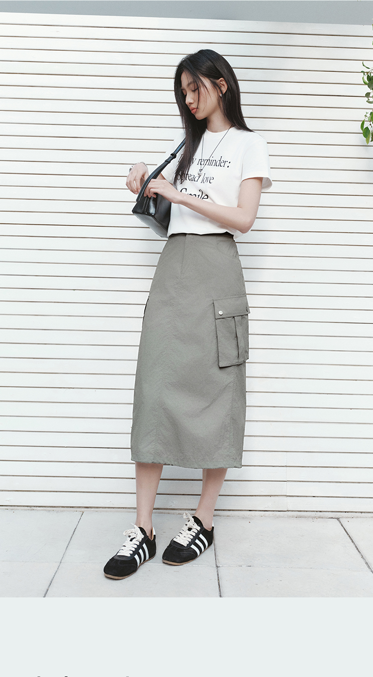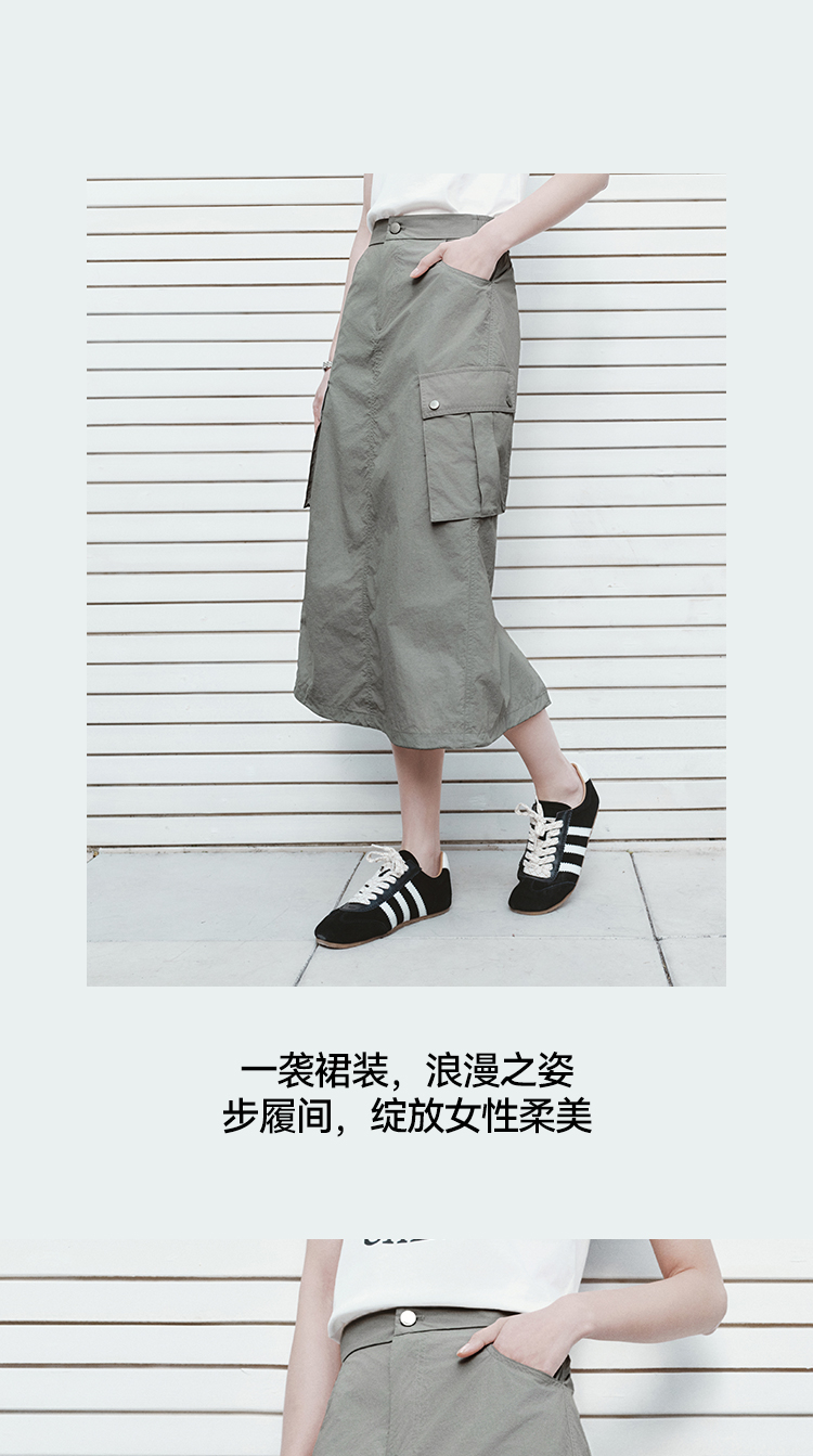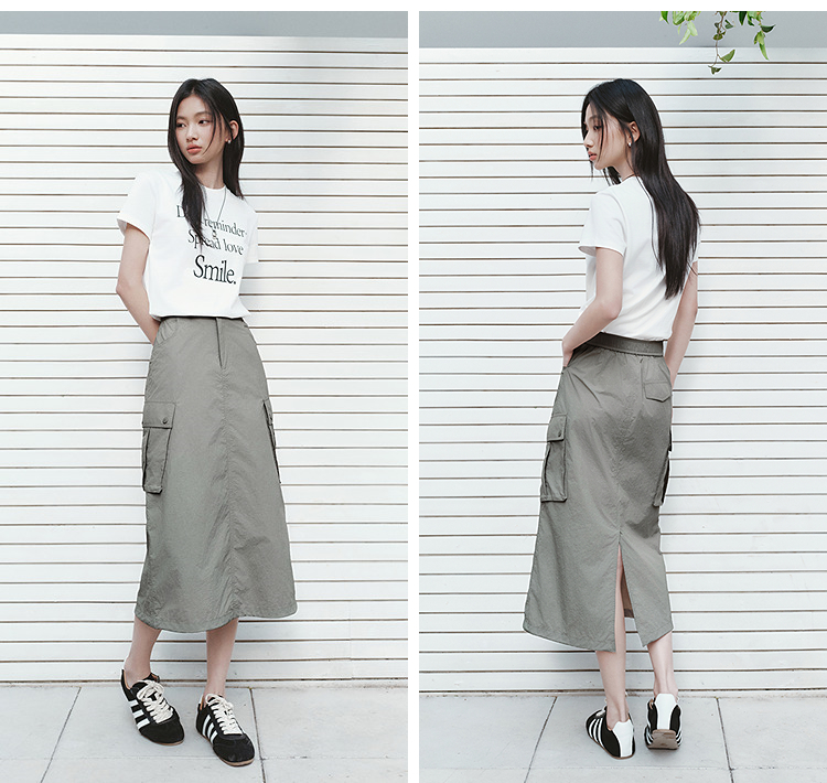 森马半身裙女夏肌理防晒凉感开叉工装裙时尚休闲潮酷高街户外长裙