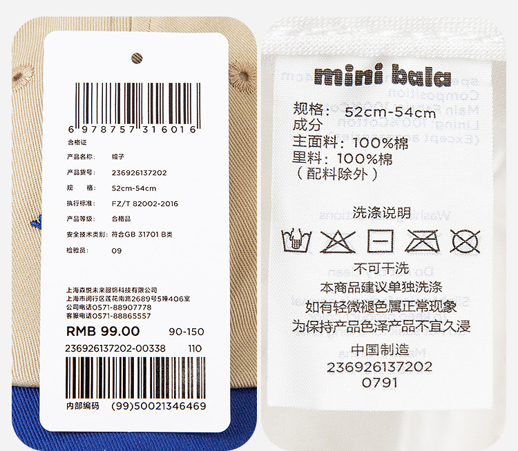 迷你巴拉儿童鸭舌棒球帽子男女童宝宝可调节头围