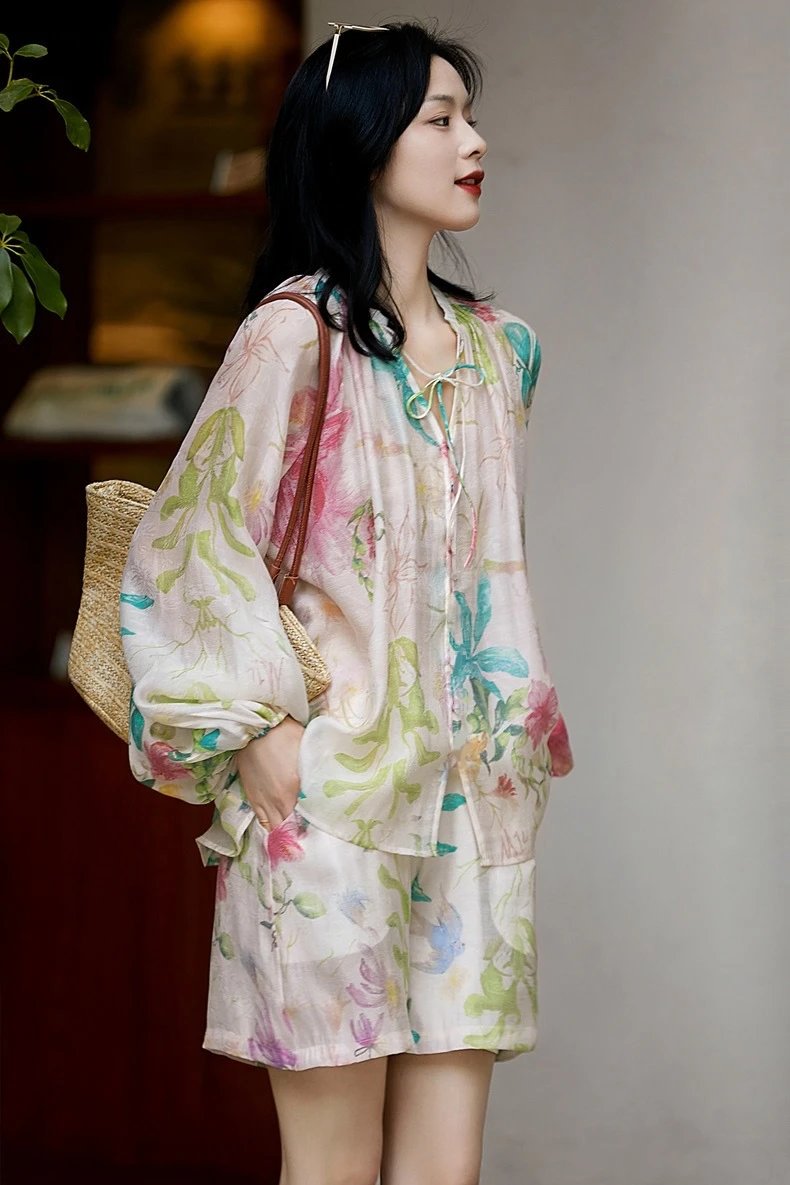LPIUTY品牌直发!弗洛花园天丝 衬衫A02Y62059/短裤A02K62059