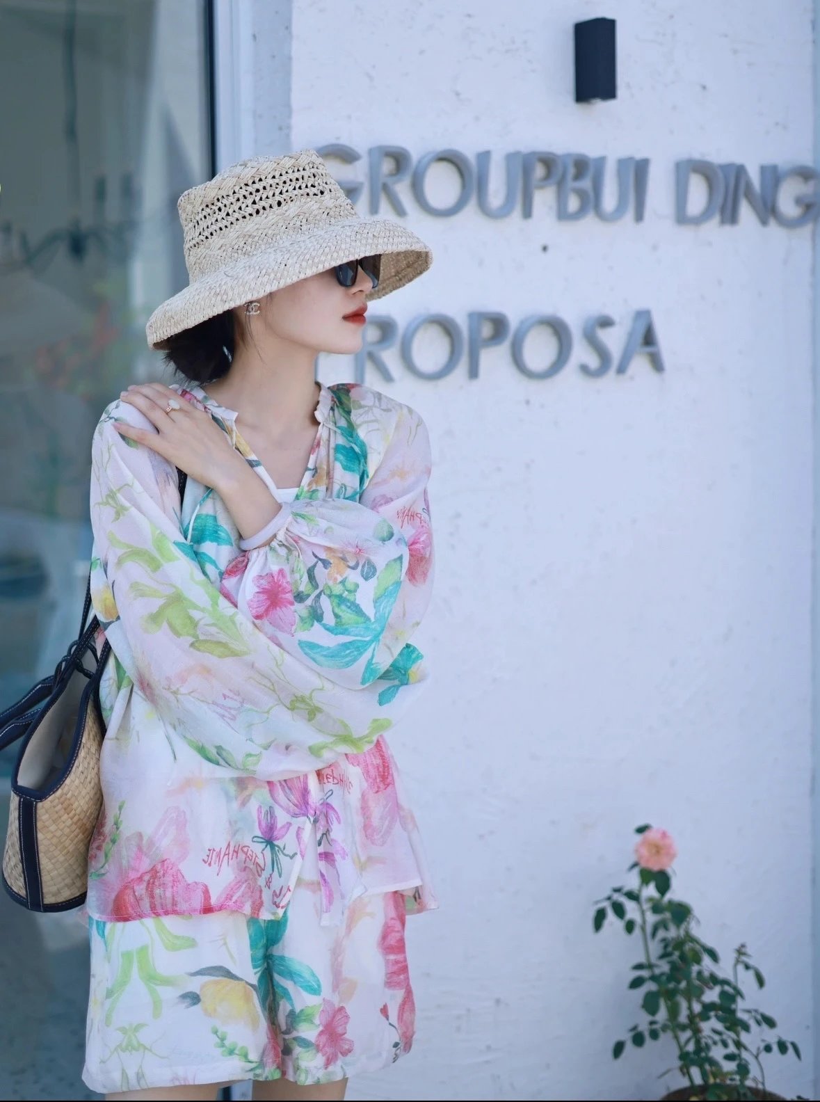 LPIUTY品牌直发⚠️贵妇团⚠️弗洛花园套装⚠️D*ior同款稀缺面料⚠️意大利进口100%天丝