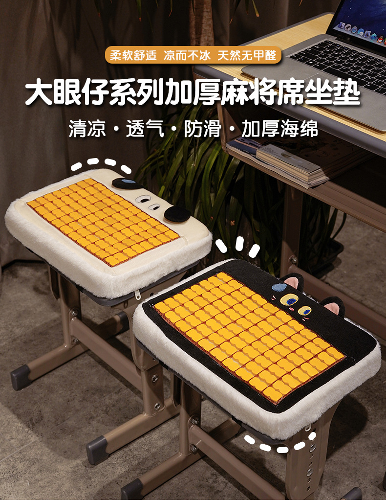 【大眼仔系列麻将席坐垫】夏季麻将凉席坐垫加厚学生夏天办公室椅子久坐不塌教室屁垫椅垫。ry