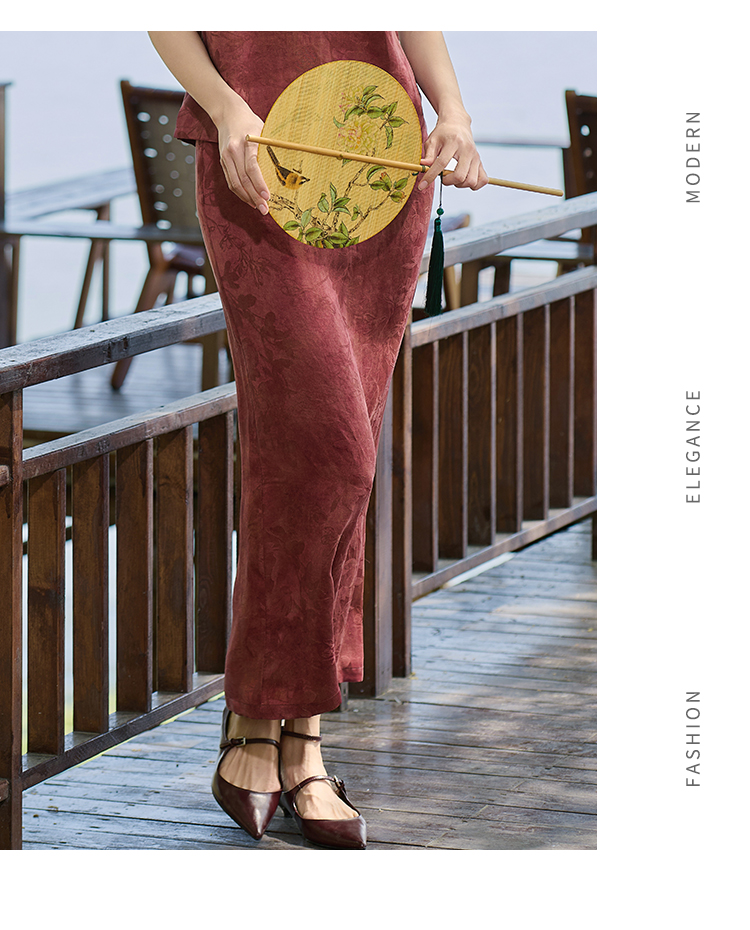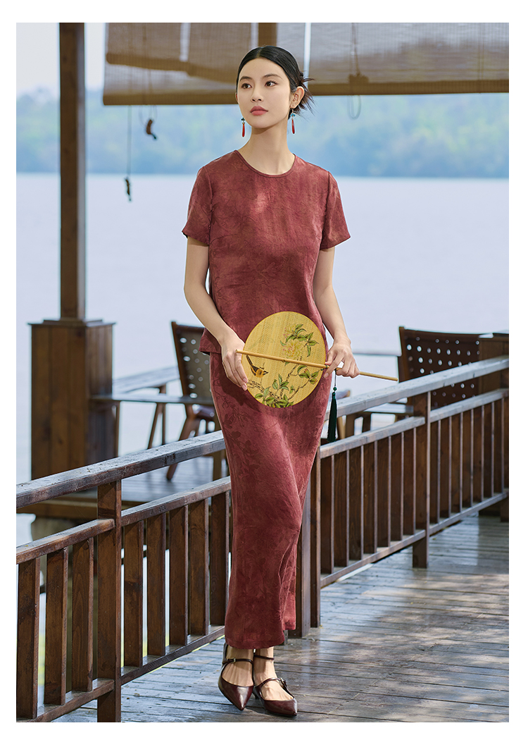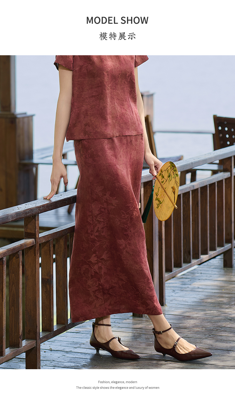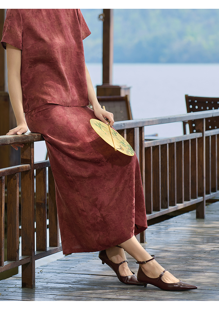佐尔美夏季新款优雅新中式国风100%桑蚕丝半身莨绸长裙女M52QS47