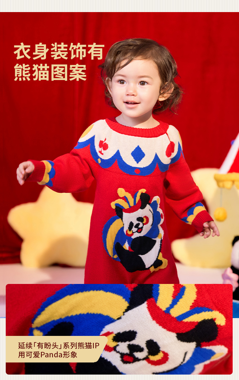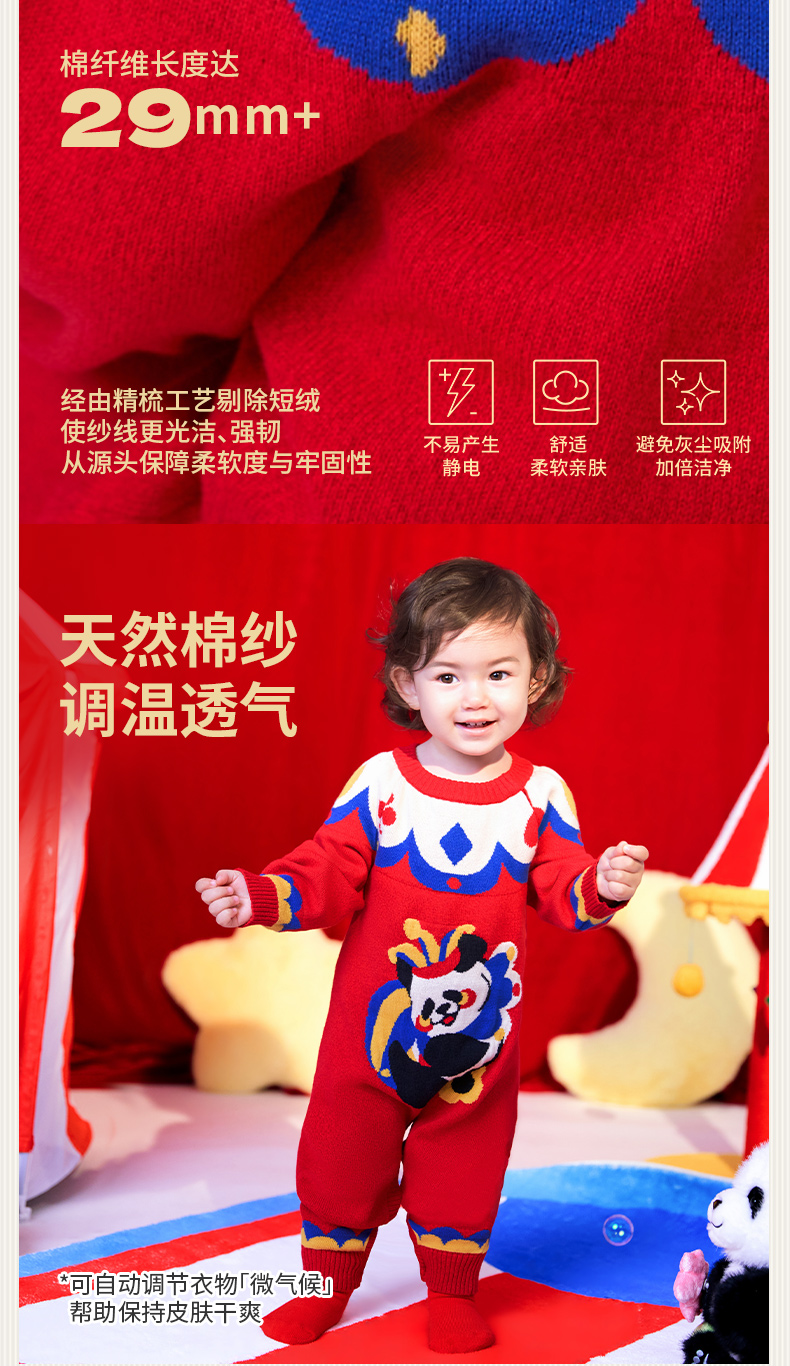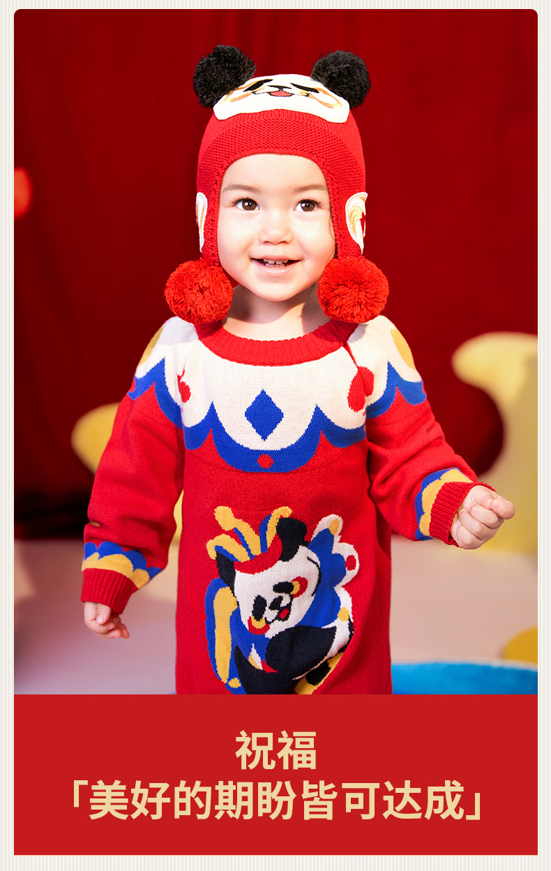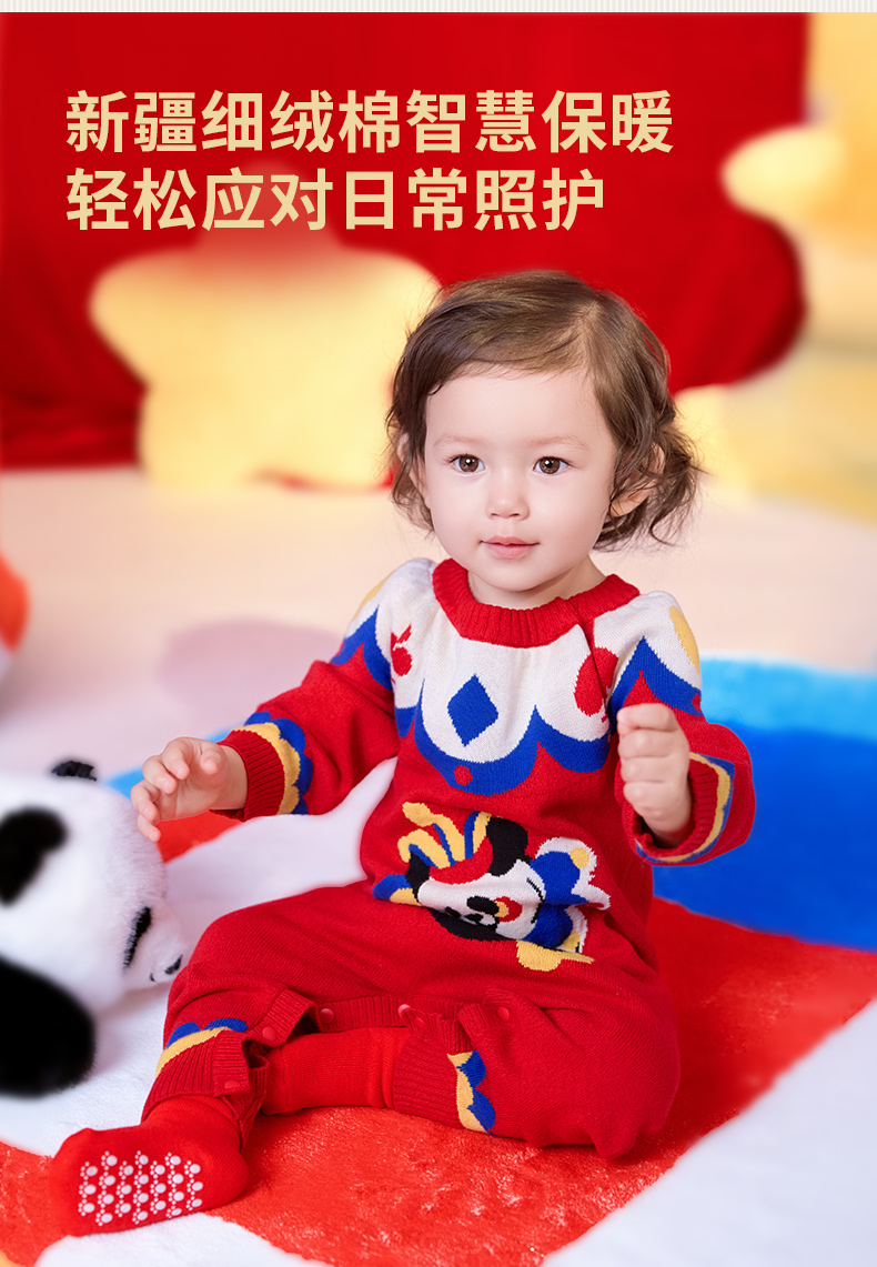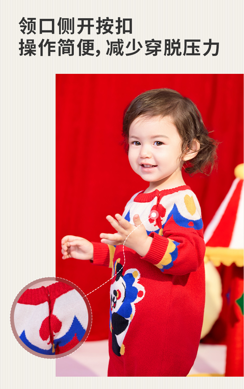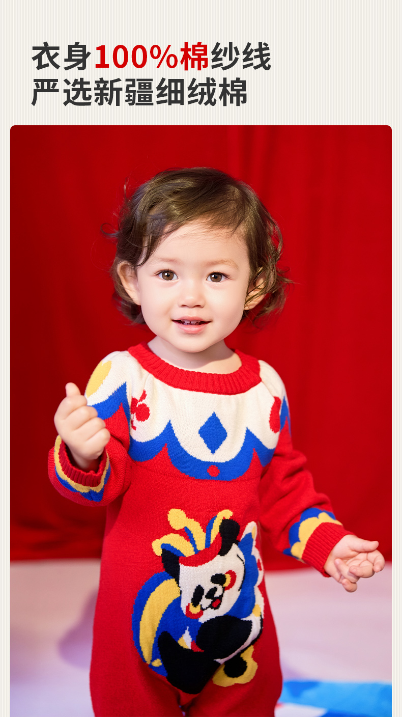 年衣童装儿童连体衣爬服冬款宝宝新年装男女童中式衣王牌盼达连体毛衣