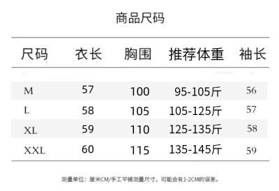 尺码: M(95-105斤)L(105-125斤)XL(125-135斤)XXL(135-145斤)