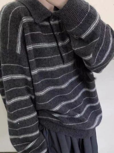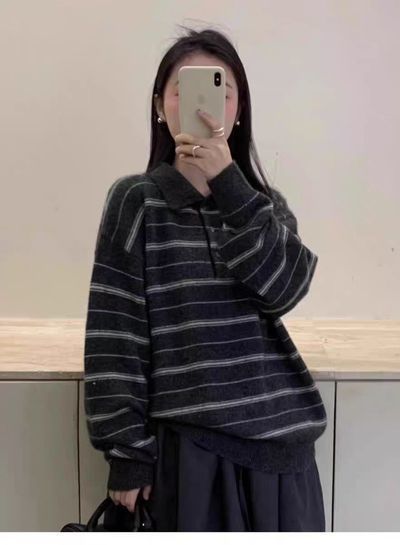 🌟解锁ins博主高级感穿搭密码🔑救命!这件毛衣也太太太韩了吧! 随手一穿就是ins博主同款氛围感✨ 撞色条纹经典又高级 Polo领设计瞬间提升气质感 慵懒但不拖沓的版型超级藏肉 微胖姐妹也能轻松驾驭👌 🧶材质是软fufu的100%羊毛!贴身穿一点都不扎!软糯亲肤 秋天单穿或者内搭白T都绝绝子 下身随便搭条牛仔裤就好看到哭
