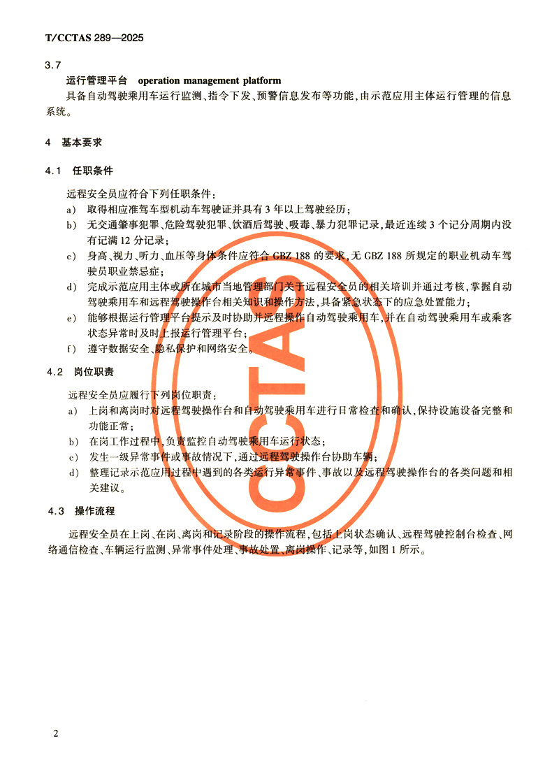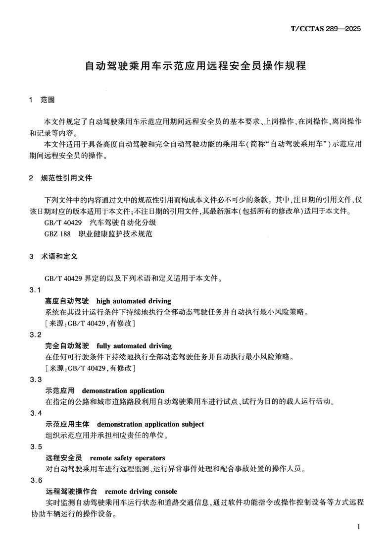 书名:自动驾驶乘用车示范应用远程安全员操作规程T/CCTAS 289—2025