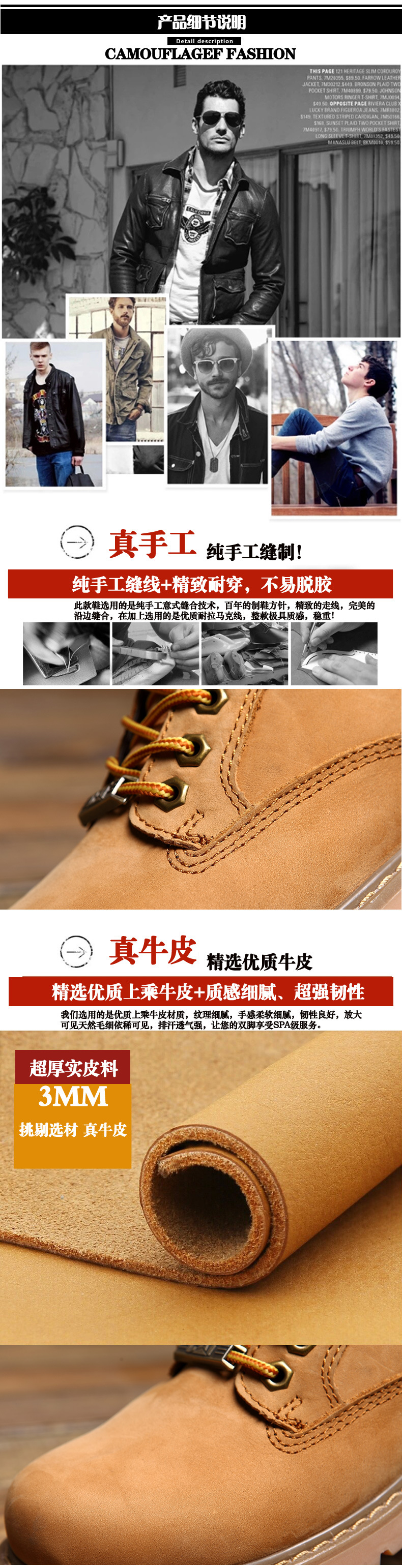 户外短靴工装男鞋软面透气大黄靴防滑耐磨手工缝制