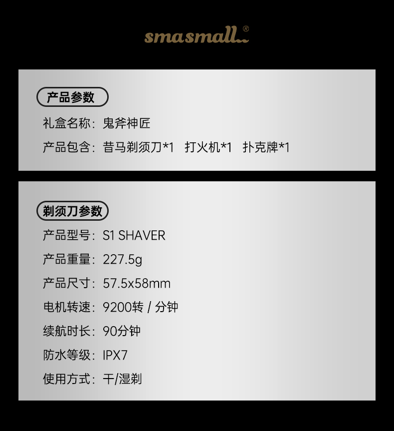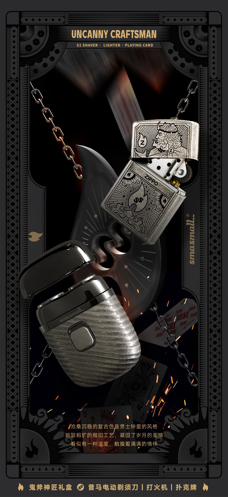 smasmall昔马 鬼斧神匠套装(定制打火机+剃须刀)