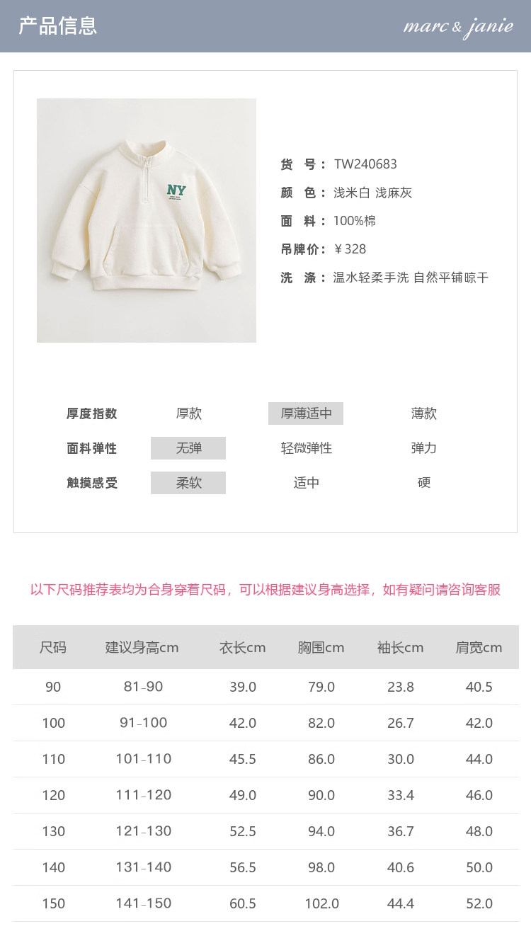 马克珍妮男童立领撞色字母运动卫衣儿童学院风上衣春装新款240683